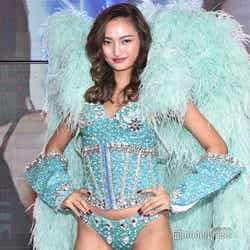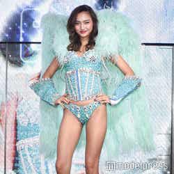 ショーの衣装を身につけた感想を求められると「最初は着せられている感があったんですけど、今は体の一部みたいな感じがします(笑)。(レッスンを行った)この1ヶ月間でだいぶ慣れました」といい、衣装のポイントについては「今は羽根を肩に背負っているんですけど、センターの人はハートのものをつけるので、それがポイントだと思います。踊るときがすごく大変なんですけど、たくさん初めてのことをしています」とニッコリ。ショーでは衣装を計7着ほど着るそうで「7年くらいモデルをやっているんですけど、こんなに早着替えが立て続けにあるのは初めて」と笑顔を見せた。