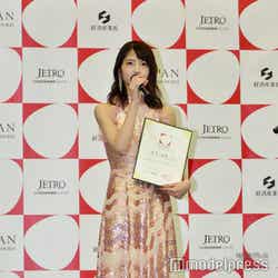 ドバイ国際博覧会日本館PRアンバサダーに任命した若月は、ピンクのきらびやかなドレス姿で登壇。今年の2月と4月に取材でドバイに訪れたといい、「日本の陶器を使っているところがあったりして、日本の技術が受け入れられていてすごく嬉しかった。ドバイは映えスポットもたくさんあって、日本にも映える場所がたくさんあるので、知っていただけたら嬉しい」とコメント。