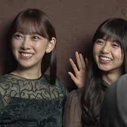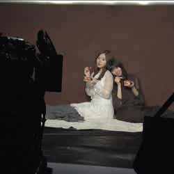 撮影の際、白石と指を絡ませて手を繋いだ齋藤だったが、握る時に上手くいかなかったのか、指が伸びたまま。すると、1本1本まっすぐになっていた指を折り曲げてあげる白石。これには、嬉しかったのか、齋藤の顔には笑みがこぼれ、2人の仲の良さが垣間見られるひと幕だった。撮影エピソード2 秋元真夏、白石麻衣に至近距離スキンシップ