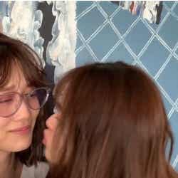 松村が山下の唇をお直しする場面も。唇の形を整え終わると、松村はすかさず山下にキス。山下が照れ笑いを見せると、松村も満足そうに笑っている。