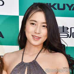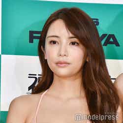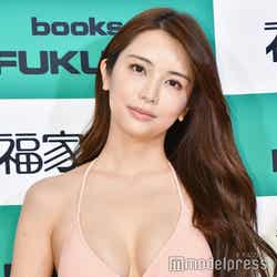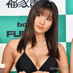 4人は、大胆なビキニ姿で登場。ビキニのポイントを尋ねられると、元東北放送アナウンサーで“日本一エッチな女子アナ”と称される薄井は、「今日は新しい水着で来ました。水着なのですが、『レース感がランジェリーぽく見えるかな』と。あまり、お胸の谷間は見えないのですが、開くと見えるタイプということで(笑)」と紹介。実際にランジェリーの胸の谷間に入ったカッティングを開いて見せるサービスで報道陣を悩殺した。