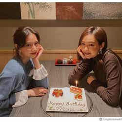 モデルで女優の河北麻友子と桐谷美玲が16日、それぞれInstagramを更新。同日に誕生日を迎えた桐谷を河北がお祝いし、2ショットを公開した。