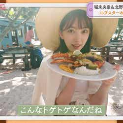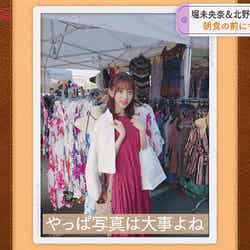 1日目、ホテルのラウンジで合流した堀と北野は、朝食のため首都・ヌメアのマルシェ(市場)に向かう。日本ではなかなか見られない広く開放的なマルシェにやってきた2人は「ここがヌメアのマルシェになります」と“マダム風リポート”を開始。「先になんか食べる?」、「食べよう」と言いつつも、ついつい雑貨バザーに立ち寄ってお揃いのカチューシャや、ヘアゴムやシュシュを買ってしまう。女子の買い物を楽しんだ後は、北野が堀を撮影したり、メンバーへのお土産を買ったりと、市場を満喫した。ようやくフードコートにやってきた2人。北野にはお目当ての朝食があるのだが、「何とかマダムと、マダムじゃない方……」と思い出せない様子。紆余曲折の末に堀が「クロックムッシュ?」と正解を言い当て、なんとかお目当ての朝食であるクロックムッシュとカフェオレ・ボウルをオーダー。カウンターについた2人はカメラを手に記念の自撮りを始める。「可愛いのにしよう!」「楽しい~!」と撮影会に盛り上がった後は、いよいよ実食へ。すると堀が北野へ「食レポして!」とリクエストすると、北野は「こちらはヌメアのマルシェにあるカフェオレ・ボウルです。日本では考えられないサイズで……親子丼!ミニ親子丼を食べている感じ」とユニークな食レポ。次は北野がカメラを手にして、クロックムッシュを食べる堀を撮影。パンをひとくち齧った堀が「うんまい!」と笑顔を見せると北野が「ナイスムッシュ!」と掛け声をかけたり、堀が「ん~~~!」と美味しさを表現したキュートな笑顔を撮影したりと、“堀北自撮り劇場”を繰り広げた。同い年の“堀北”コンビならではの雰囲気に視聴者も「かわいいの最上級超えた」「仲良さそうで幸せ」と癒されていた。