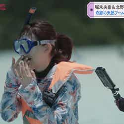 最終日である3日目は、「奇跡の天然プール」であるピッシング・ナチュレルへ。ホテルのレンタルショップで浮き輪を借りに行った2人は、なぜかシュノーケル道具を一式レンタル。ガイドさんに連れられて白い砂浜を歩いていく。鳥の鳴き声に耳を傾けながら木々を抜けていくと、そこには水底まで見えるほど透き通った“天然のプール”が広がっており、2人からも思わず「ビューティフル!」と感嘆の声があがった。しかし、堀と北野は2人揃って泳ぐのが苦手。ライフジャケットでしっかり対策し、ガイドと手を繋いで少しずつ深いところへ進んでいく。海と繋がっているピッシング・ナチュレには熱帯魚が多数生息しており、2人のすぐ近くまで。泳ぎだけでなく魚も苦手な堀さんは、「魚?魚!?いや~~~!」と大慌て。しかし慣れてくると「水族館の中にいるみたい!」とテンションが上がる。一方の北野は、「顔を水につけるのが怖い!」と言いつつも、魚にパンをあげるため、浮き輪を装着して少し深いところへ移動したり、ウミヘビを見つけたりと、ちょっとした冒険気分。シュノーケリングはそこそこに切り上げ、2人はシャチボートにのり大はしゃぎ。童心にかえって遊ぶ2人の姿に、視聴者からは「最高のツーショット」や「天使が2人!」というコメントが寄せられた。