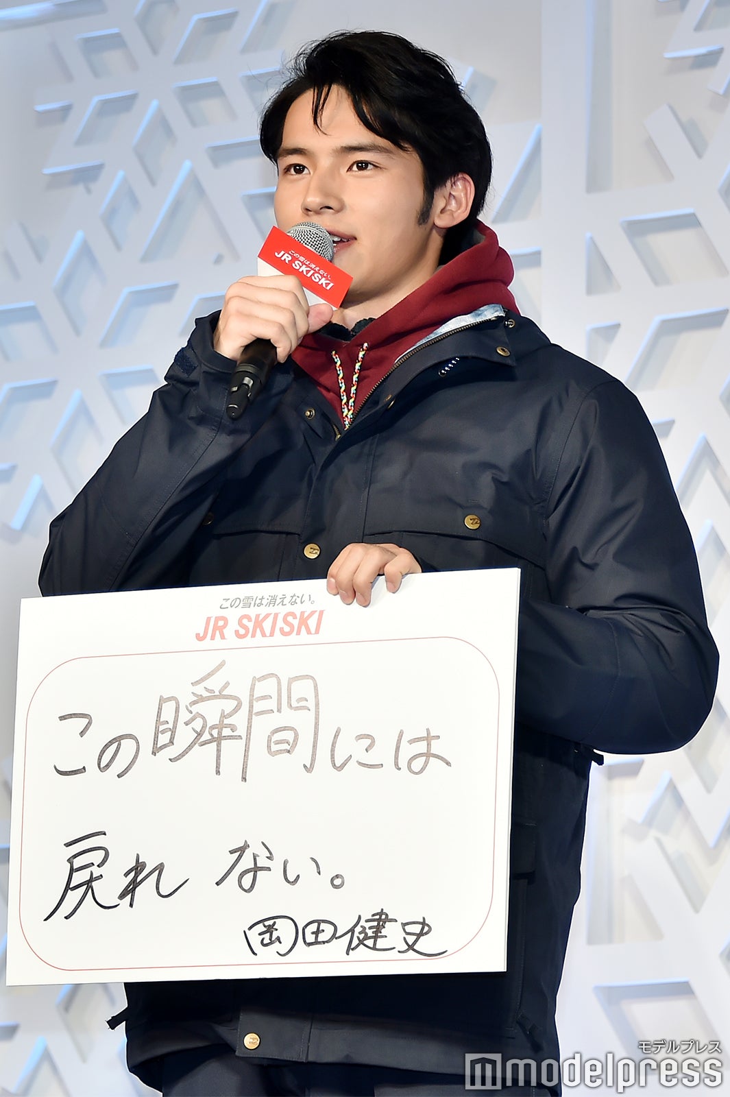 スキーウエア姿で登場した2人は、お互いの印象や撮影エピソードを披露。岡田は、デビュー前より作品を観ていたという浜辺との共演に「嬉しかったです」と喜び、「この2人にしか表現できない作品を作りたいなと撮影前から楽しみにしていました」とコメント。一方、浜辺は野球経験のある岡田について「(「JR SKISKI」のCMは)雪合戦のイメージがあるので、もし投げ合いになったときはやられちゃうんじゃないかなと思って、本当に剛速球が怖かったです」と告白した。