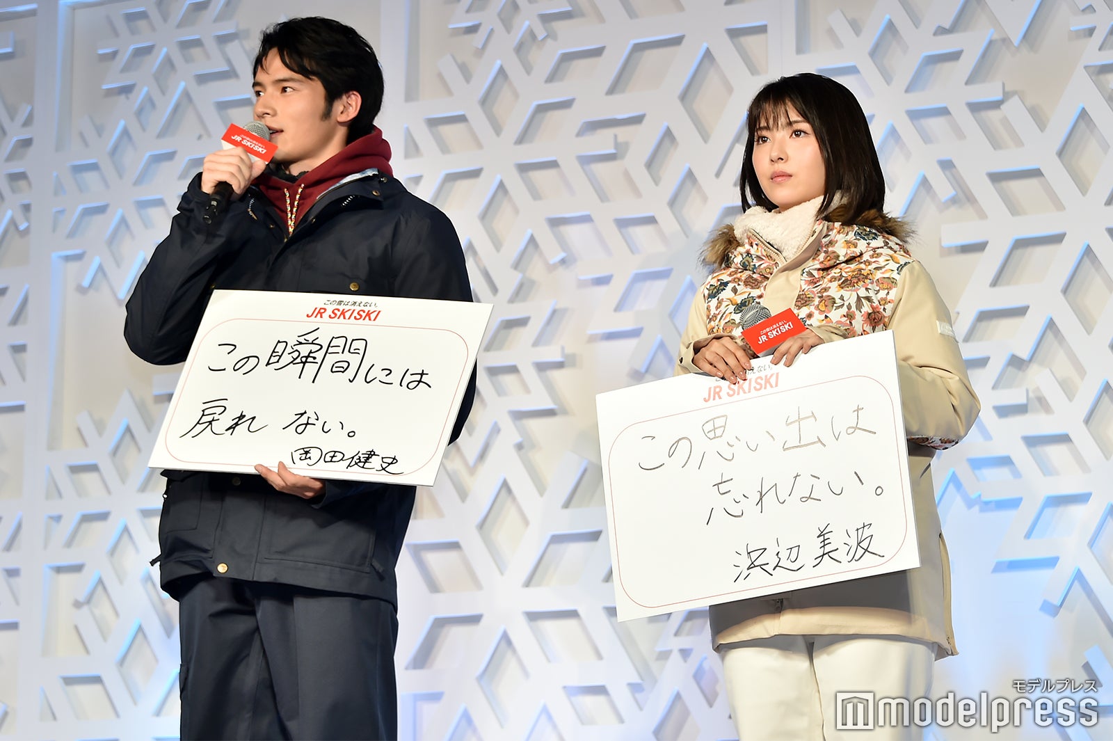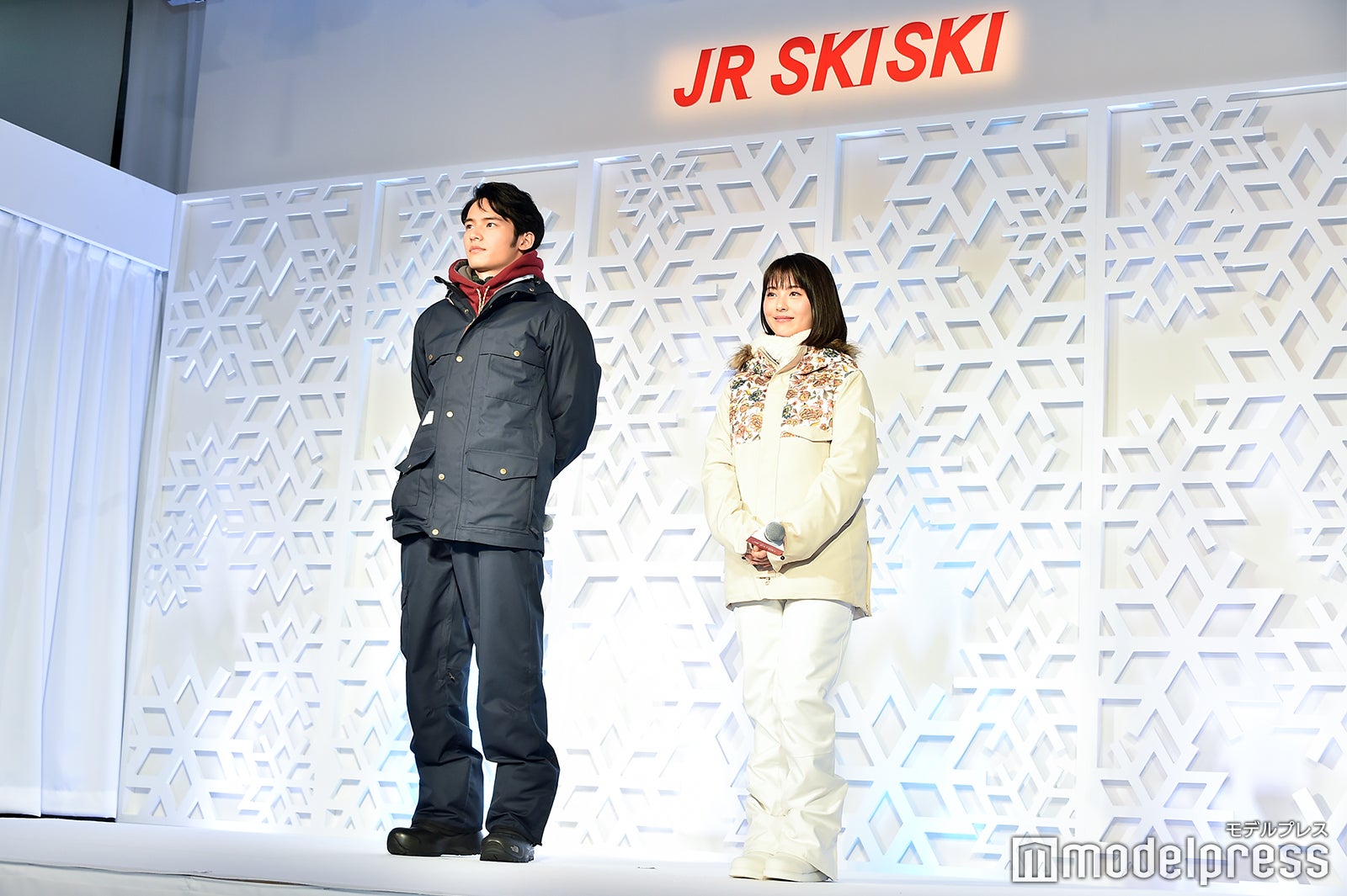 2019年度「JR SKISKI」キャラクターに起用された女優の浜辺美波と俳優の岡田健史が18日、都内にて行われた記者会見に出席した。
