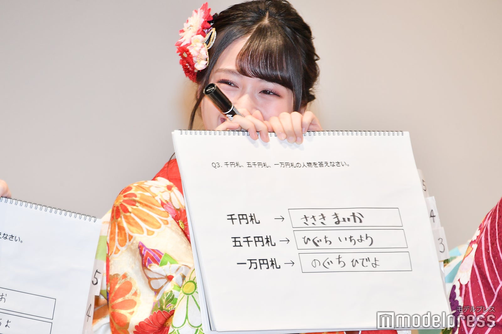 また、一般常識クイズ大会も行われ、「世界三大珍味」の問題では谷崎が「さとう、しお、こしょう」と調味料を列挙したり、菅波が「牛タン、ロース、とり肉」と好きな食べ物を書いたりと珍回答が続出。佐々木は干支を順番に答える問題では「猫」を入れてしまい、「猫は入りたかったけど入れなかったんだよ」と大場が教えると「知ってるー!」と頷きながら、「でも私は入れてあげたいと思った!」と主張。お札の人物を答える問題では千円札に自分の名前を記入し、観客は爆笑。一万円札に野口英世の名前を書き、「野口さんは衣織で覚えてたの。どこか分からなかったから余っちゃって、(山本が)『引っ掛け』って言ったから”今後なれる人”かなと思った」と天然ぶりを炸裂させた。