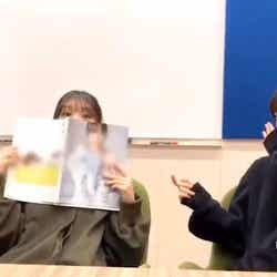 “パーカー系”“なびいてる系”“乗ってる系”と写真集カットのヒントを出しながら見ている与田は、途中写真集を持つ手がズレて、カメラに誌面が見えそうになってしまう瞬間も。山下は「これ1番見せちゃダメなやつ!」と慌てたが、「ここだけちょっとサービス、有料ですよって」と期待溢れるコメントをしていた。