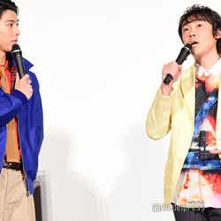 今作は、“映画館でいっぱい遊ぼう!”というコンセプトのもと、歌・ダンス・クイズなどを親子で楽しむことができる体験型ムービー。赤を差し色にしたポップな衣装で登場した賀来は「お兄さんお姉さんと同じ仕様に。ちょっと青と赤を」と笑顔。「みんな元気~?」という呼びかけに、子どもたちが「は~い!」と答えると「嬉しい~!可愛いなあ」と頬を緩めた。
