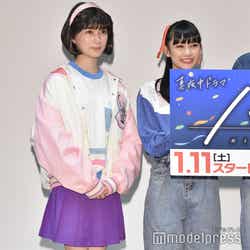 「私は1980年代は生きていないのでわからないんですけど、幸子ちゃんは“昭和のザ・かわいい女の子”というイメージを持って演じました」と振り返り、現場の雰囲気を尋ねられると「仲良くやらせていただきました。学校生活を楽しんでいるような感じで、和気あいあいと撮影が進んでいきました」と黒崎と微笑み合った。