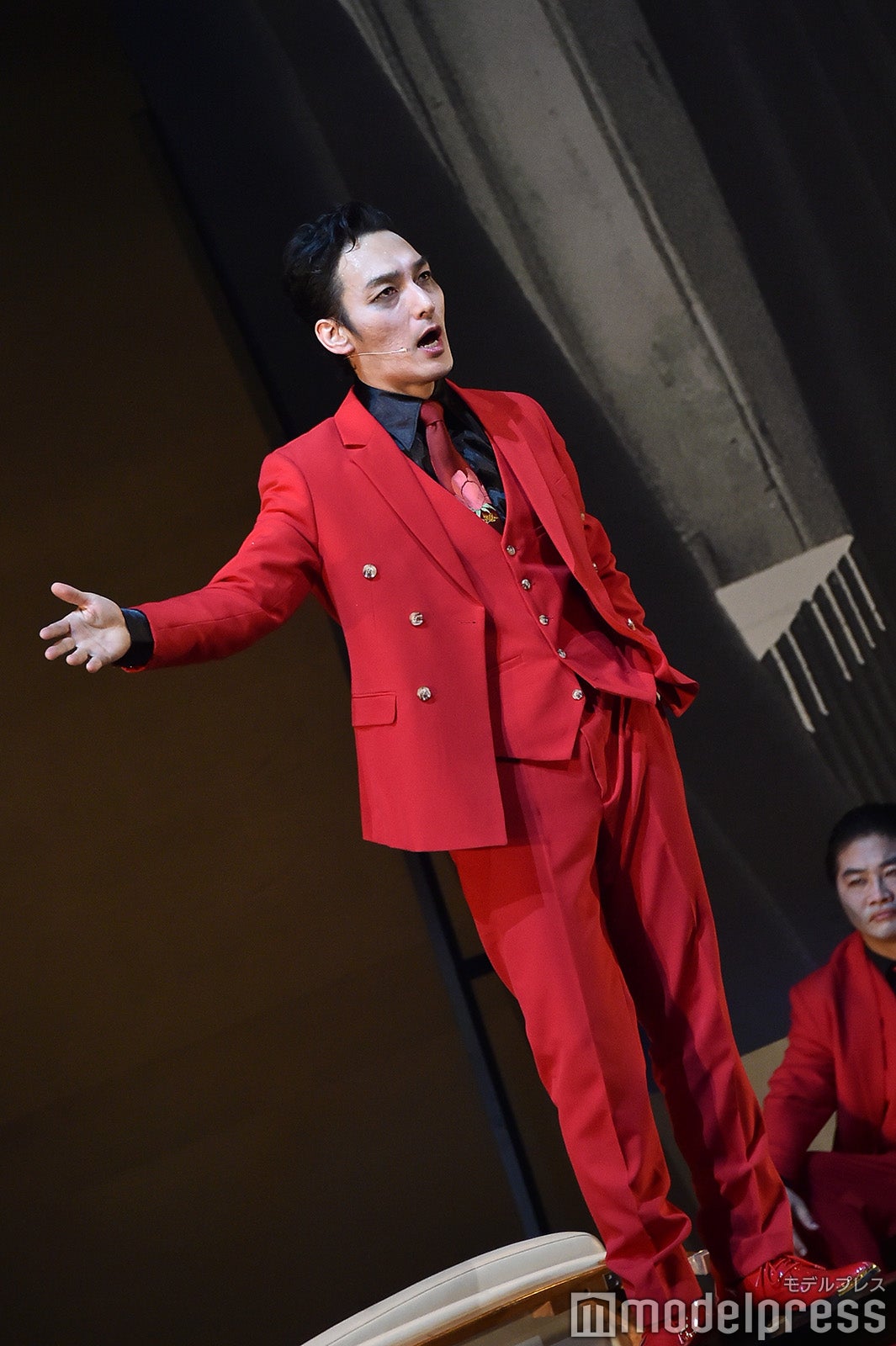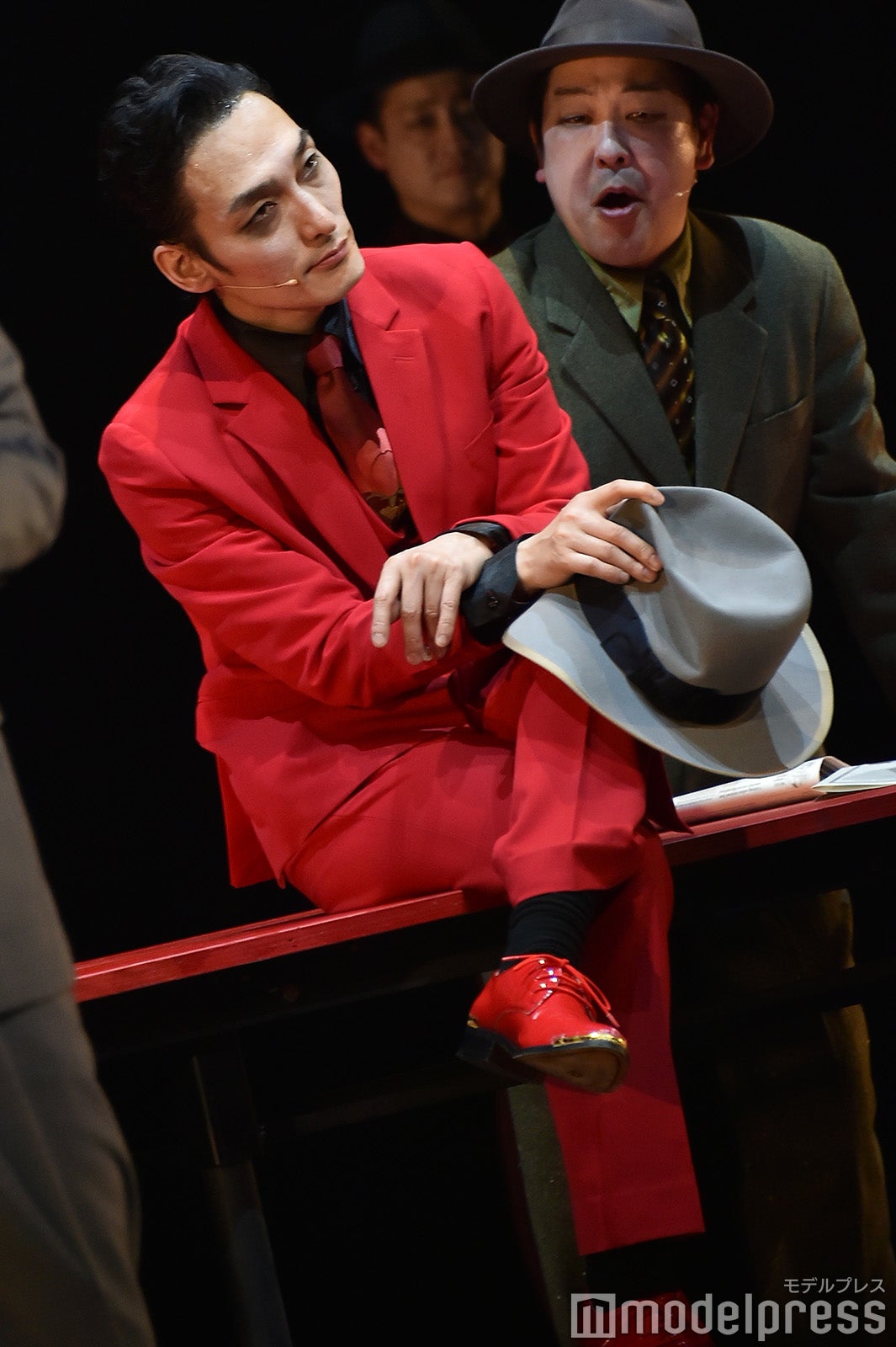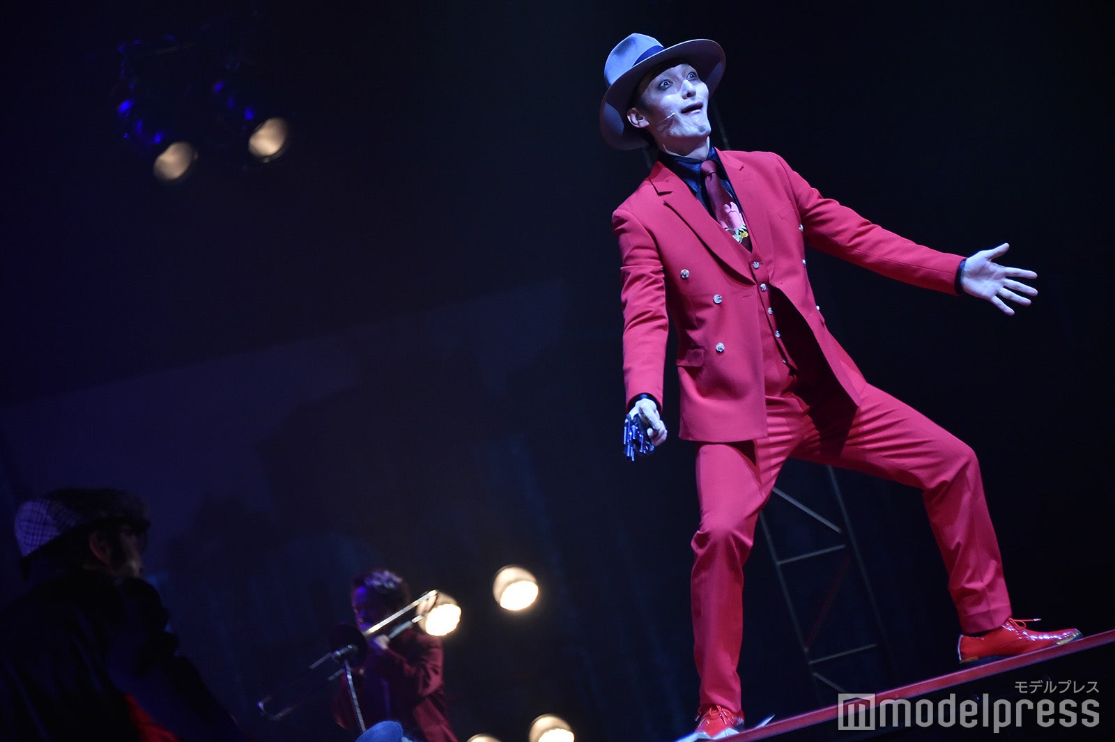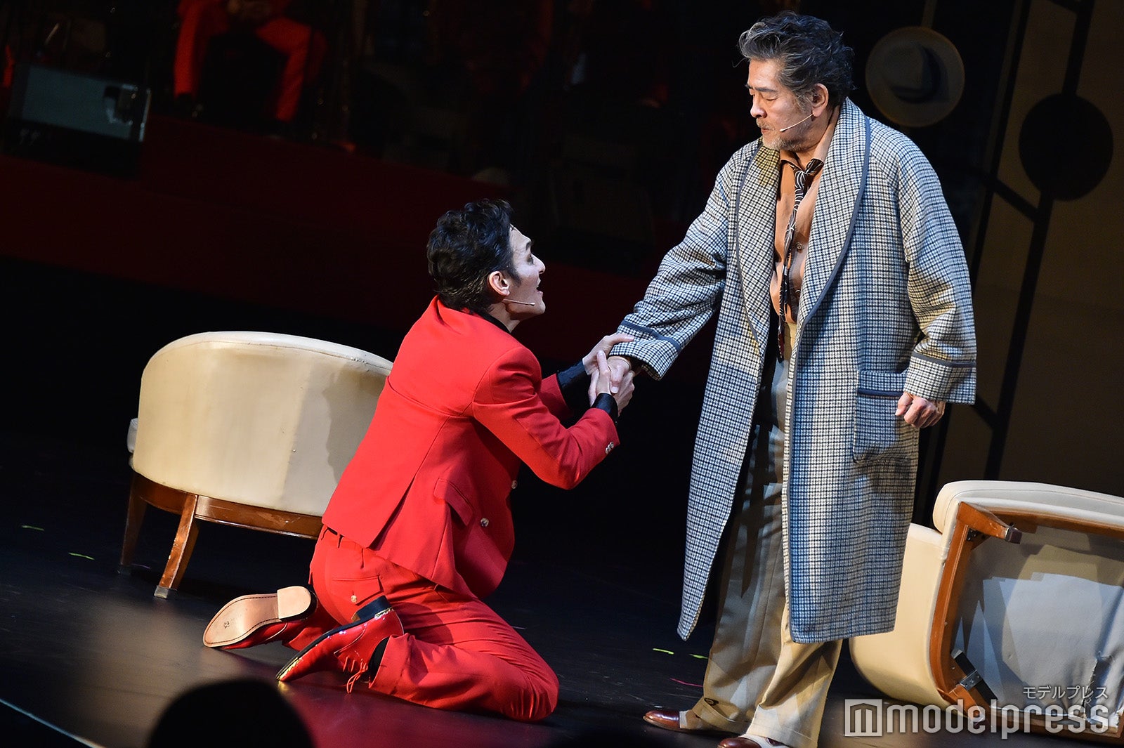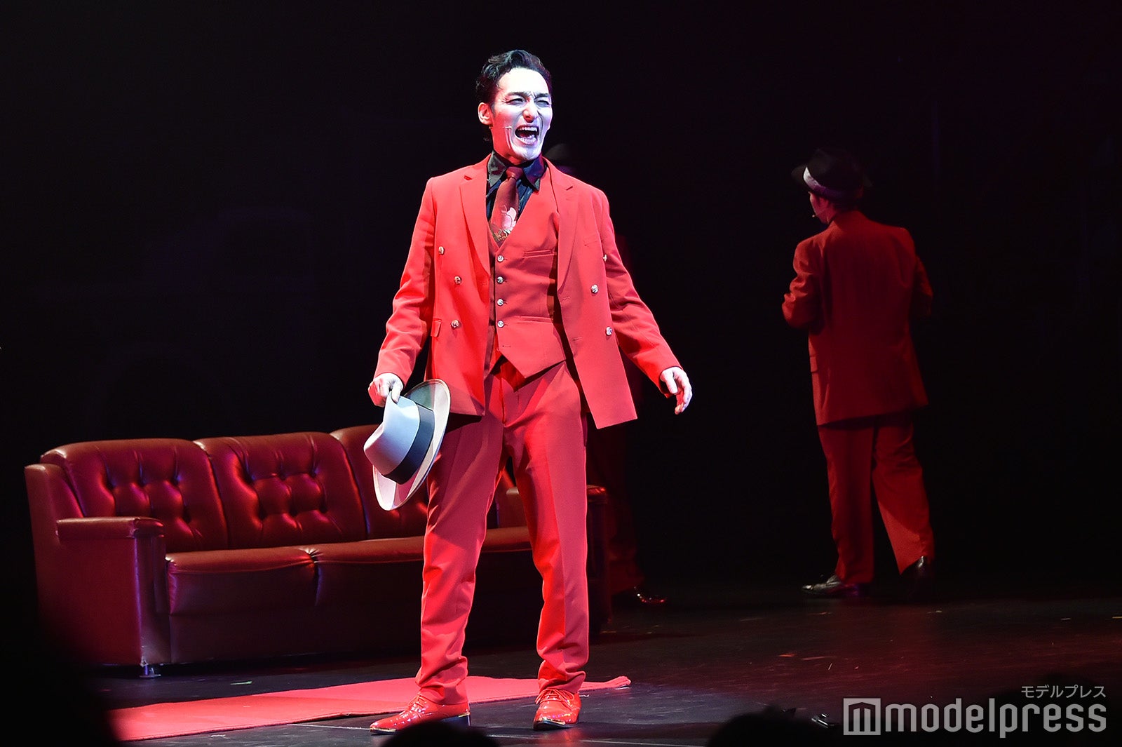 ステージには真っ赤な生バンド隊がずらりと並び、舞台のあらゆる場面で“ギャング”草なぎが歌い、踊る。狂気に満ちた表情、怒りが滲む表情、色気が溢れる表情とさまざまな顔を見せ、ステージだけでなく客席全体を使って動き回る姿は圧巻。