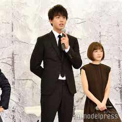 鈴木と榮倉は、竹内の“両親”役。“息子”となる竹内に関し鈴木は「ほぼ身長が同じなんです」と紹介し、「あと、最近気がついたんですけど、同じ場所にほくろがあるんですよね」とあごの右側を指しながら、竹内との共通点を告白。これに竹内は「本当だ!何で言ってくれなかったんですか!?」と驚き。鈴木自身も「メイクさんに言われて」知ったそうで、お互いほくろを見合い笑っていた。