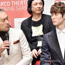 15日、東京・渋谷のPARCO劇場お披露目&オープニング・シリーズ記者会見が行われ、舞台『ピサロ』に出演する渡辺謙と宮沢氷魚らが出席した。
