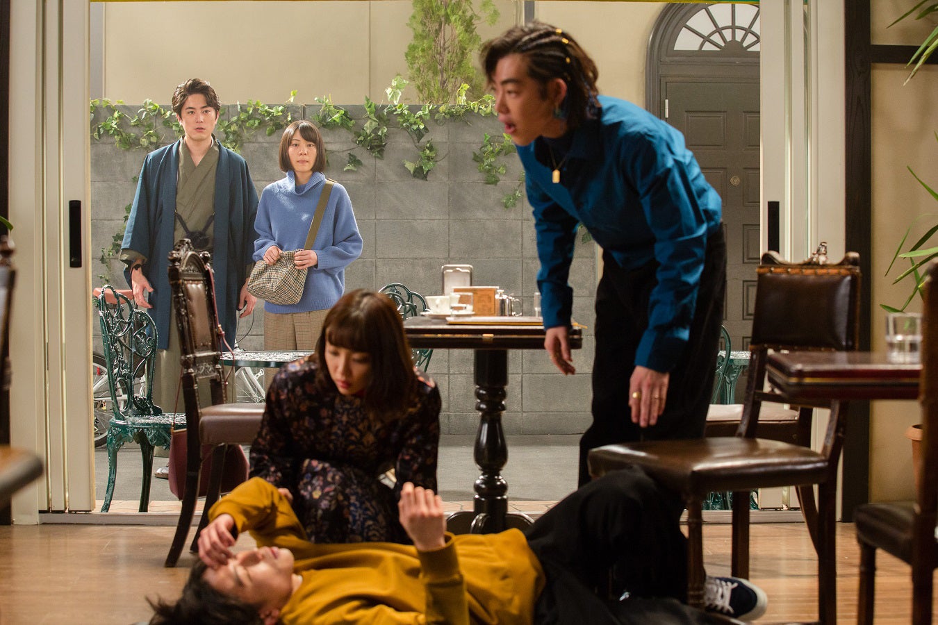 とある収録スタジオー。恋愛ドラマ『猟奇的な君を宇宙の果てまで追いかける』の監督・黒沢盛夫(芹澤興人)は頭を抱えていた。主演の人気俳優・高城蓮(吉村界人)、ヒロインの女優・西條友里(山谷花純)の演技に問題はないのだが、エキストラの柴崎翔(間宮祥太朗)の度を超えた熱演が目立ちすぎ、撮影がなかなか前に進まないのだ。柴崎は俳優志望の青年。世に出るチャンスを求めて数々の現場でエキストラをこなしてきたが、未だに日の目を見ていない。だが、まったくめげる様子もなく、今日の現場でもアピールしようと必死に。時代劇でもないのに悪目立ちする和服姿で現れた柴崎に、助監督の矢部夏樹(水上京香)やほかのエキストラたちもあ然とするばかりだ。