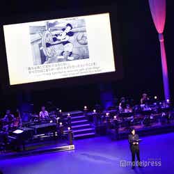 コンサートのタイトルになっている“アーカイブス”の意味、オズワルド・ザ・ラッキー・ラビットからミッキーマウスの誕生までなどの歴史をユーモアたっぷりに紹介。「ウォルト・ディズニーの人生を巡る旅に一緒に出掛けましょう」と呼びかけ、ミッキーマススが蒸気船に乗っている絵が映し出されると、稲垣は何回も「ポッポー」と笛の音を真似しながらはけていった。(modelpress編集部)