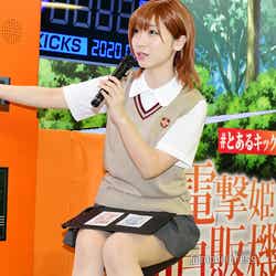 コスプレイヤーの伊織もえが20日、都内で開催された「とある電撃姫の蹴自販機」設置記念イベントに出席した。