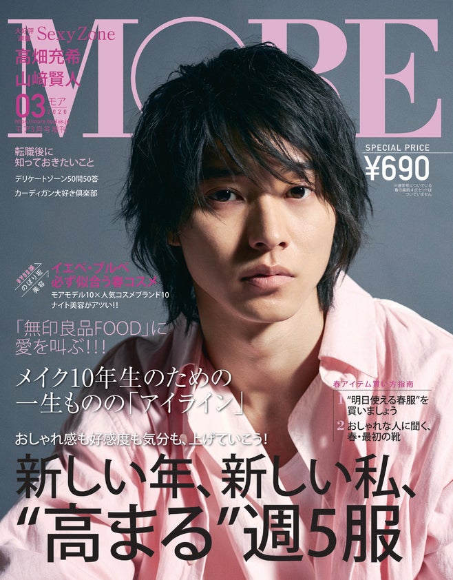 28日発売の雑誌「MORE」3月号で同誌初の試みとして、女優の高畑充希が通常版、俳優の山崎賢人(※「崎」は正式には「たつさき」)が増刊の表紙をそれぞれ飾る。