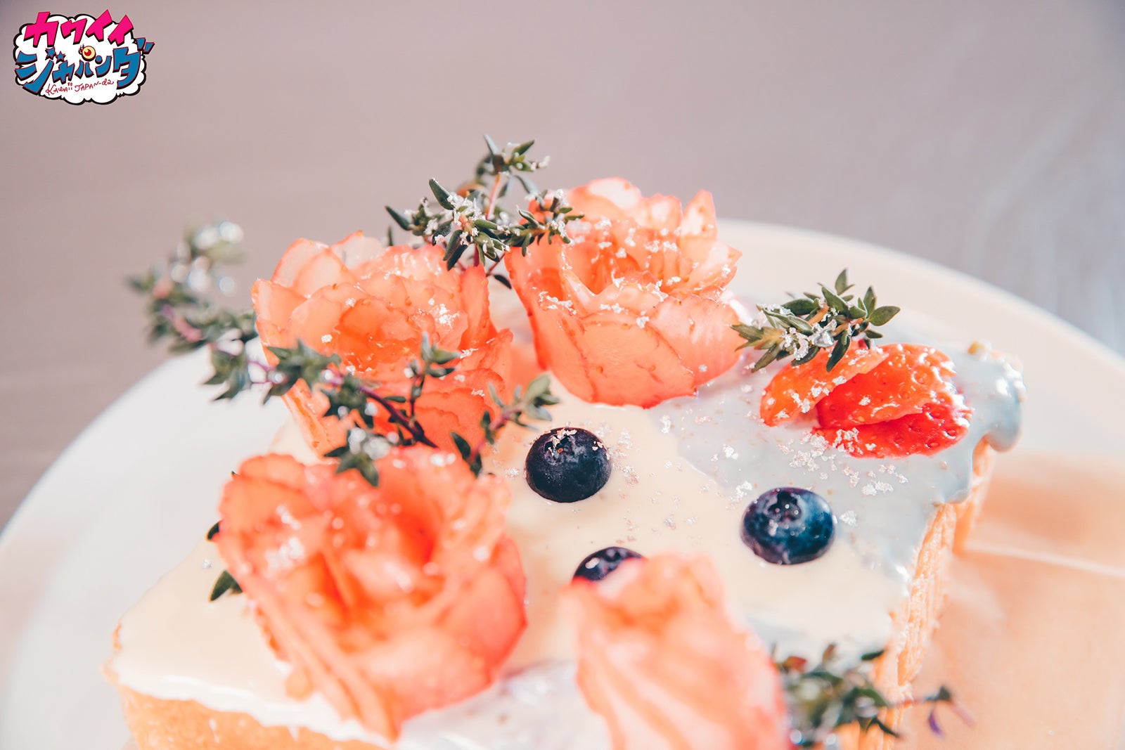 朝9時。大満足の写真が撮れた2人が次に向かったのは、祇園の人気和食割烹が手掛けるカフェ「カフェ アットモス」。シェフの繊細な包丁捌きで作り上げるこだわり抜かれたメニューの数々が美しすぎると話題を呼び、いつも行列ができているカフェ。さっそく2人も朝食として注文。すると薔薇に見立てた苺が彩られたトーストに、りんごが花びらのようにカップに入ったアップルティーが。これはSNS映え間違いなし。そんな行列必至のカフェも“朝活”ならまだ並ばずにお店に入れるため、良いことばかり。