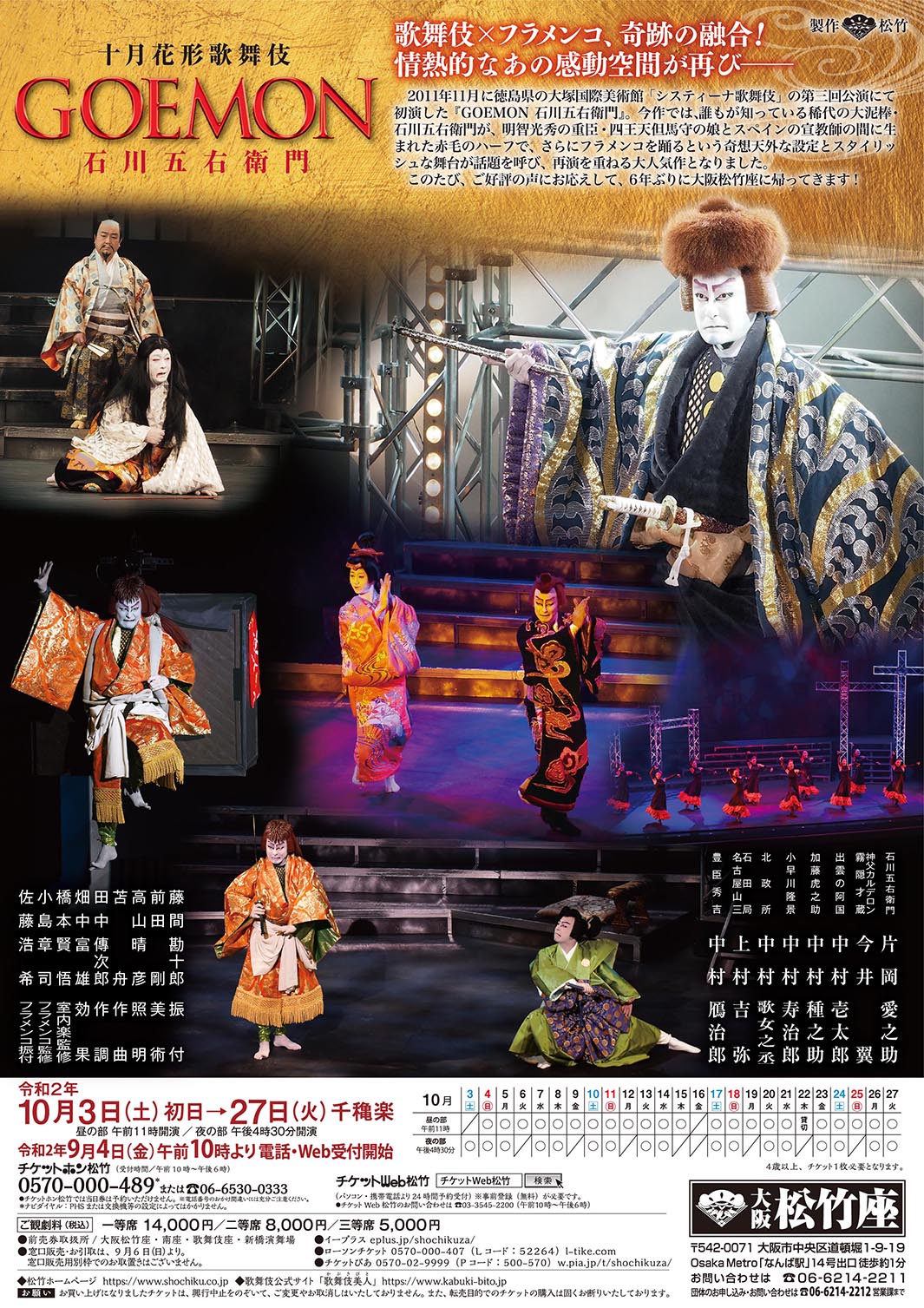 2011年11月に徳島県の大塚国際美術館「システィーナ歌舞伎」の第三回公演にて初演した『GOEMON 石川五右衛門』。今作では、誰もが知っている稀代の大泥棒・石川五右衛門が、明智光秀の重臣・四王天但馬守の娘とスペインの宣教師の間に生まれた赤毛のハーフで、さらにフラメンコを踊るという奇想天外な設定とスタイリッシュな舞台が話題を呼び、2013年2月、2014年10月に大阪松竹座、そして2016年10月には新橋演舞場と、再演を重ねる人気作となった。
