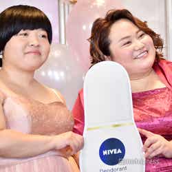 フリーアナウンサーの田中みな実が13日、都内にて行われたイベントにおかずクラブ(オカリナ、ゆいP)とともに出席した。