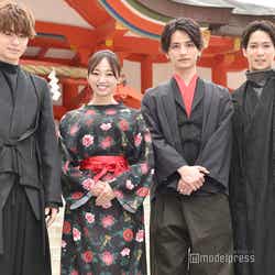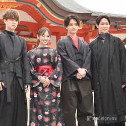 拝殿でのご祈祷と、拝殿前でのフォトセッションを終えたキャストの4名は、今の心境を尋ねられると、主人公・あずみを演じる今泉は「ちょうどお稽古が始まって1週間が経って、まだうきは役の瀬戸くんが一緒に稽古できていないので…」と切り出し、瀬戸が「やってますよね?」と驚き。今泉は「まだ全員のところに参加できていなくて、2人の殺陣の稽古しかできていないので、そういう不安もありつつですし、歴代のそうそうたる方があずみを演じていられているので、今からすごく緊張していますし、何より会社からの圧(笑)、プレッシャーもあるんですけど、この作品に携わってくださっているみんなで新しいあずみを作り上げていけたら嬉しいなと思います」と気合いを入れた。