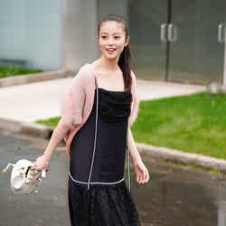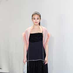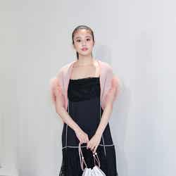 パリコレ初参加となった今田。ブラックのドレスにピンクの羽織物で大人可愛いファッションで参加した。