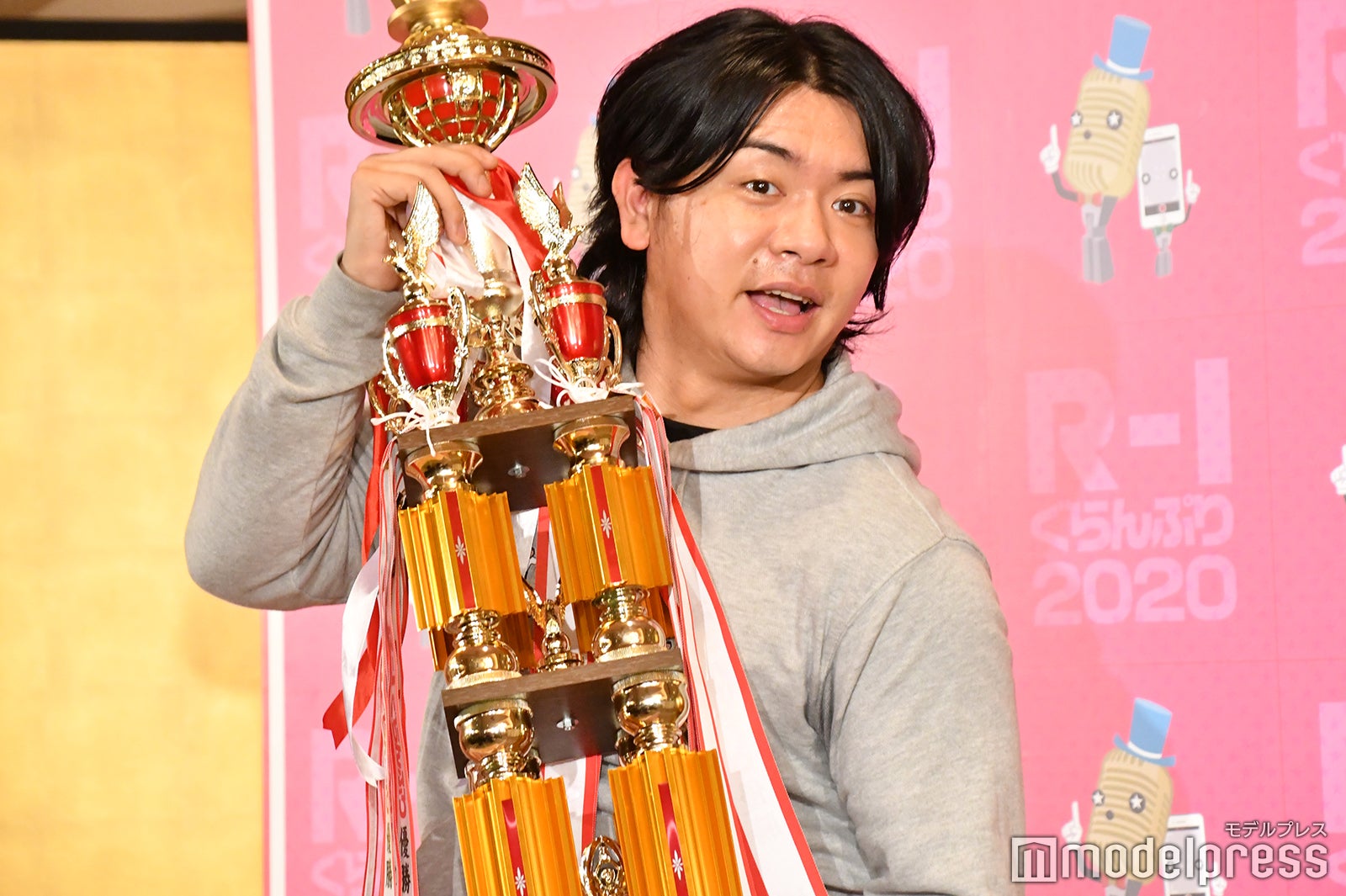 決勝が無観客で行われたことに話題が及ぶと、「僕は『無観客の方がやりやすいのかな』と思いました。今回はスタッフさんがいたのですが、完全なる無観客の中でやるネタ番組とかもあって、そういうのでメンタルを鍛えられたので」とコメント。「無観客と聞いたときにチャンスだと感じた?」との質問には、「そうですね。ガッツポーズが出ましたね」と回答。新型コロナウイルスの影響については、「たまたま今回の件でライブや舞台が全部無くなったのです。だから、どうやっても無観客の状態でなければ練習ができなかったので、それがよかったと思います」とも。優勝賞金500万円の使い道を質問されると、「もう、雑に使おうかなと思っています。旅行とか、課金とか」と声を弾ませていた。(modelpress編集部)