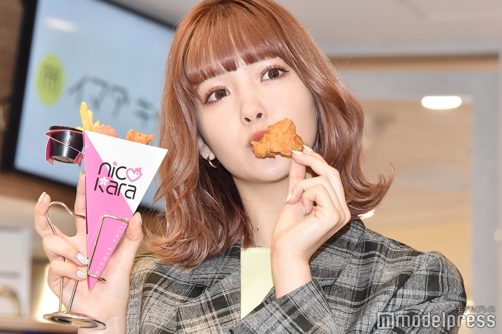 モデルの藤田ニコルが15日、東京・SHIBUYA109で行われた「nicokara(ニコカラ)」販売記念プレスプレビューに出席。タピオカに続くブームとしてからあげを挙げた。