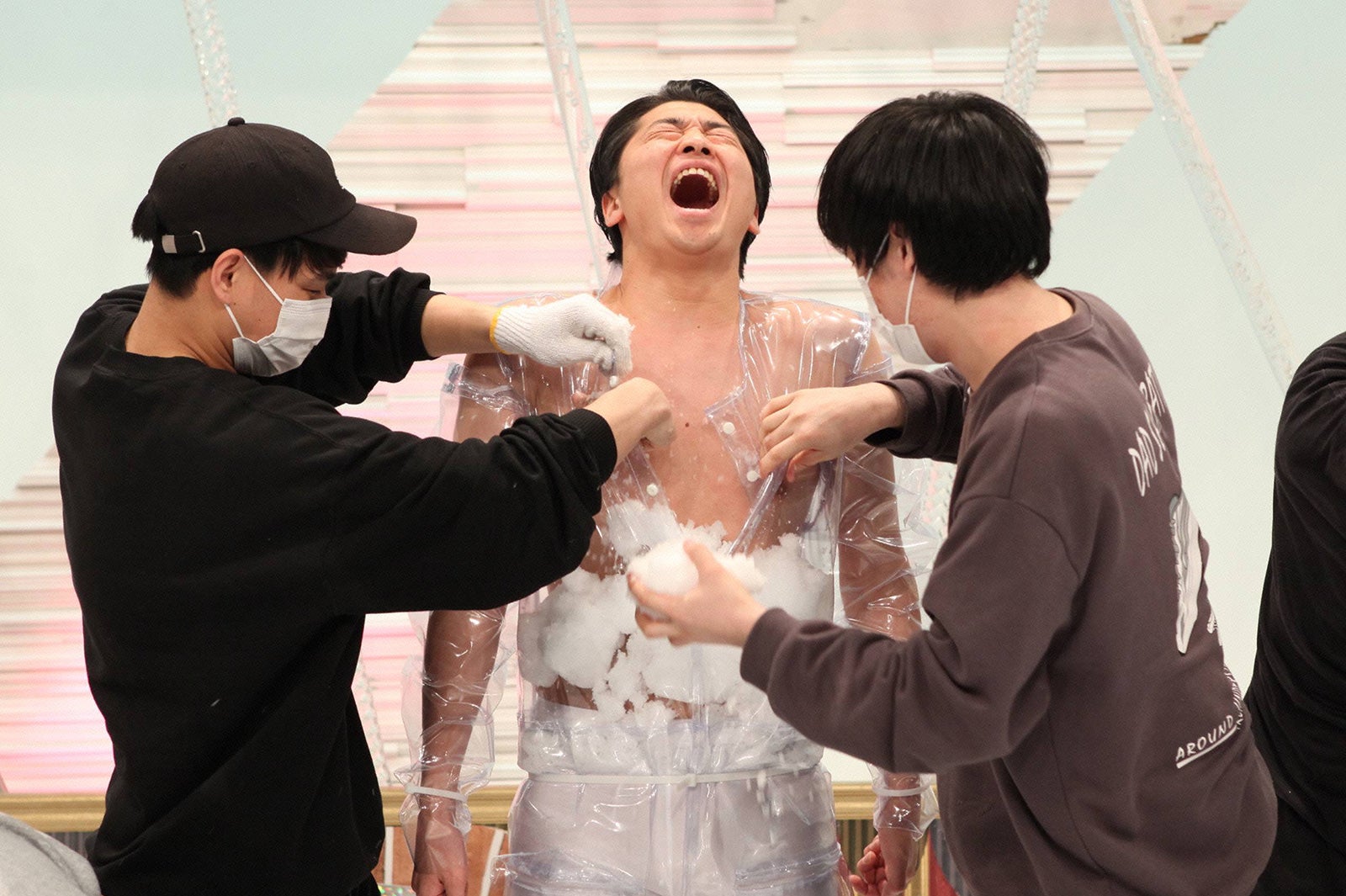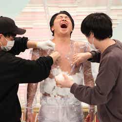 岩本が白いパンツ一丁に雪をつめるための特殊な透明スーツで登場すると、7Gメンバーは「なんかかっこいい!」と絶賛。体を鍛えている岩本は、自信満々の様子でチャレンジがスタート。スタッフが猛スピードで雪を詰め始めると、最初は余裕な表情を見せていたのだが…。