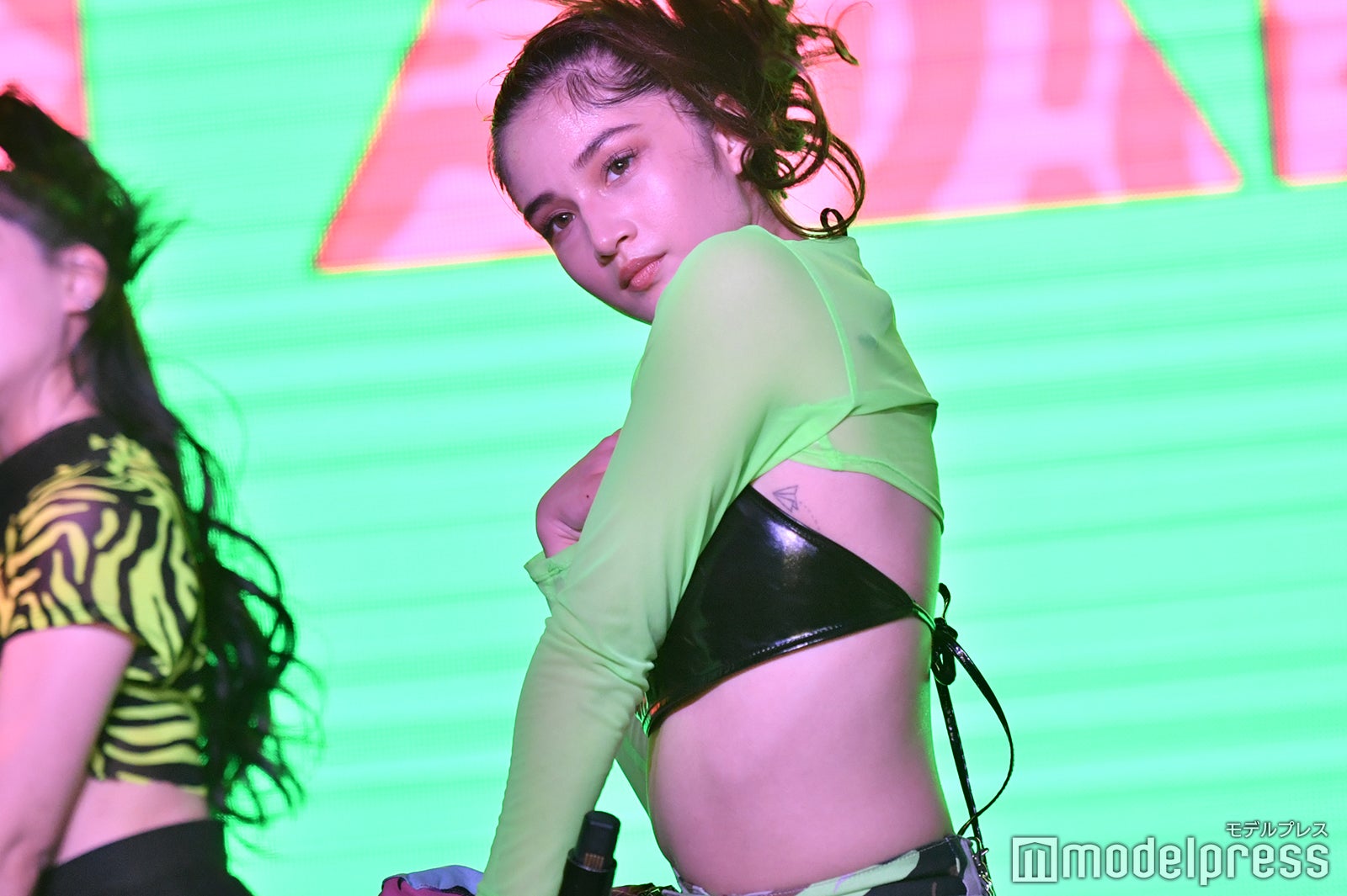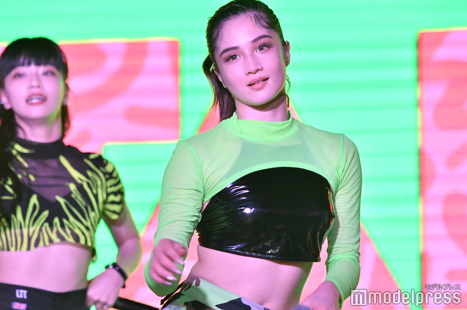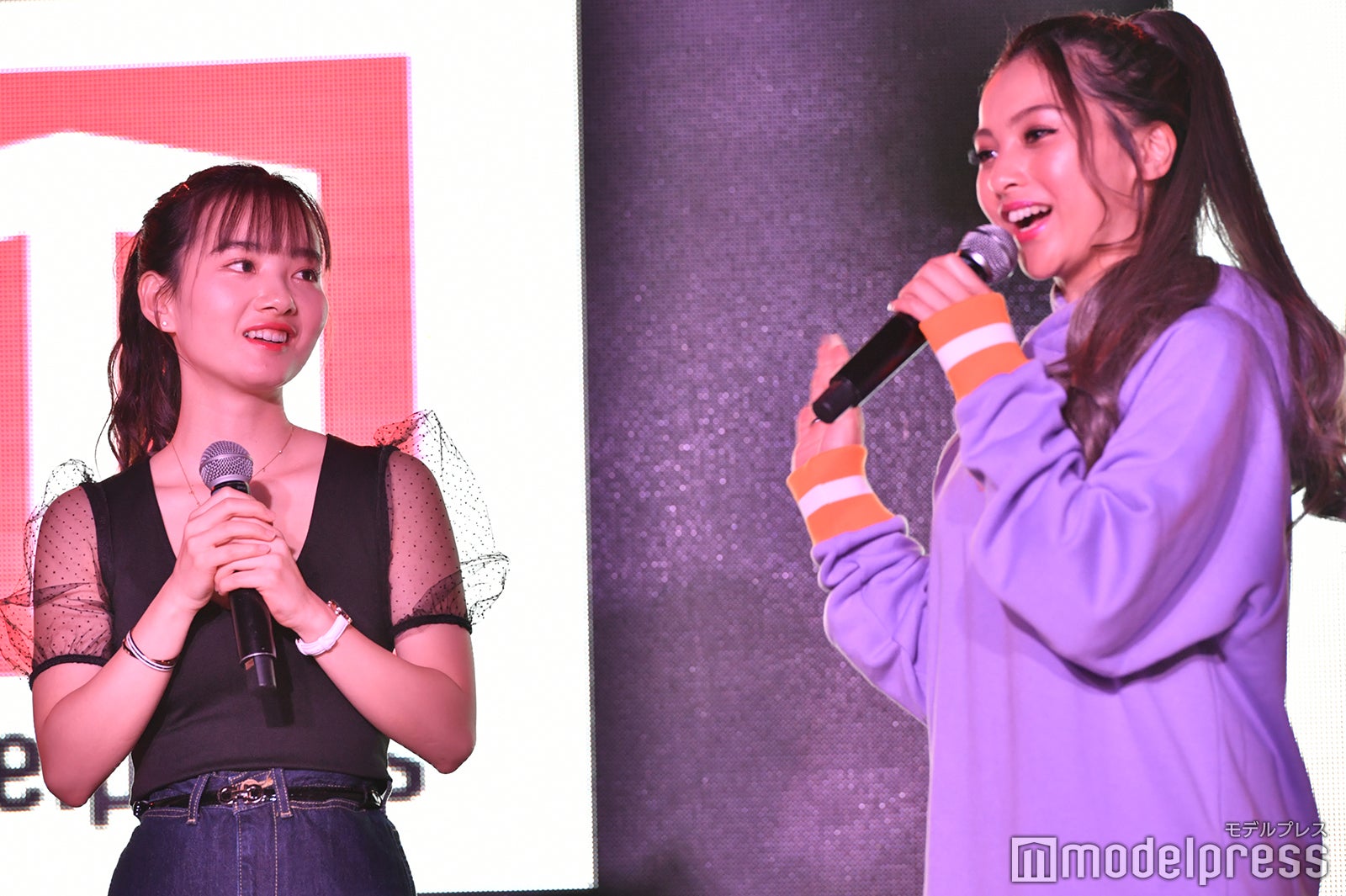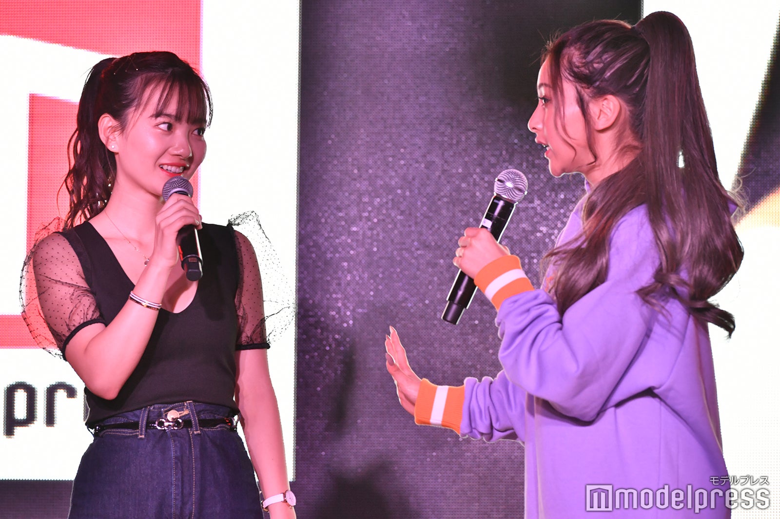 また、モデルプレスYouTubeステージでは、ゆきぽよと人気YouTuberとのコラボが実現。日本インストラクター協会(JIA)筋トレインストラクター認定試験に合格するなどボディトレーニングに精通し、YouTubeチャンネル「#みのトレ」ではその経験をもとに日々のトレーニング動画を発信している犬童美乃梨、現役早稲田大学生で語学力に長けた才色兼備YouTuberの青山舞莉が登場した。犬童は「一瞬でくびれを細く見せる方法」を提案し、「お腹を柔らかくしているとくびれができやすい」ということで、くびれをほぐすストレッチ法を伝授。「お腹を引っ込めながら腕を上げて体を横に倒すとけっこうキツイんです」とストレッチを実演し、ゆきぽよもトライすると、筋肉が伸びたようで「超気持ちいい」と効果を実感していた。