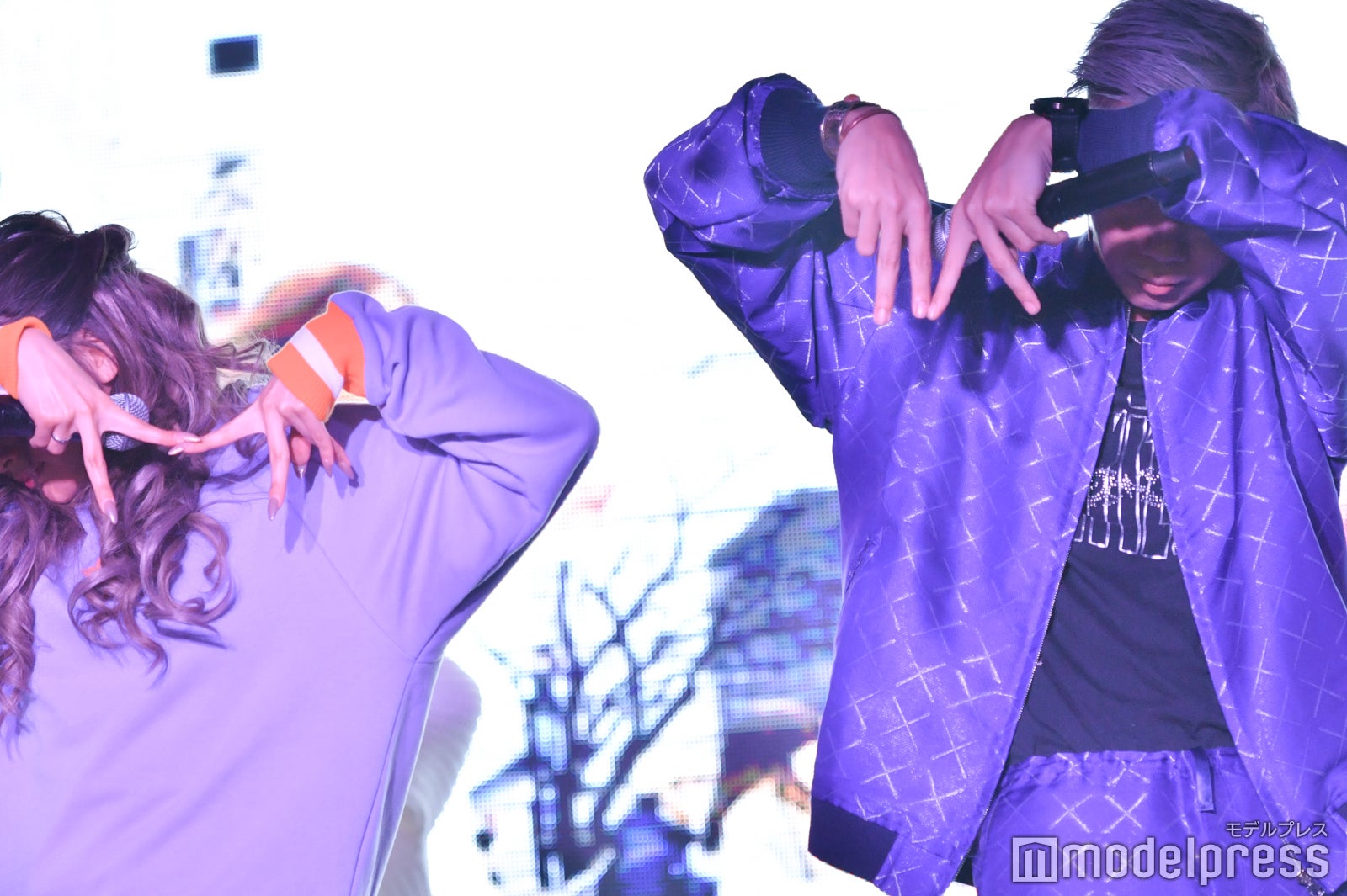 その後、SLOTHとコラボパフォーマンスを披露。新曲の「めっかわ◆ ~一生ギャル宣言!~」は、指でVサインを作って「M」にする“めっかわポーズ”が印象的で、「虫歯ポーズから流行ってるのがないので、若い子たちに真似してもらって流行れば」とギャルのカリスマらしくアピールした。