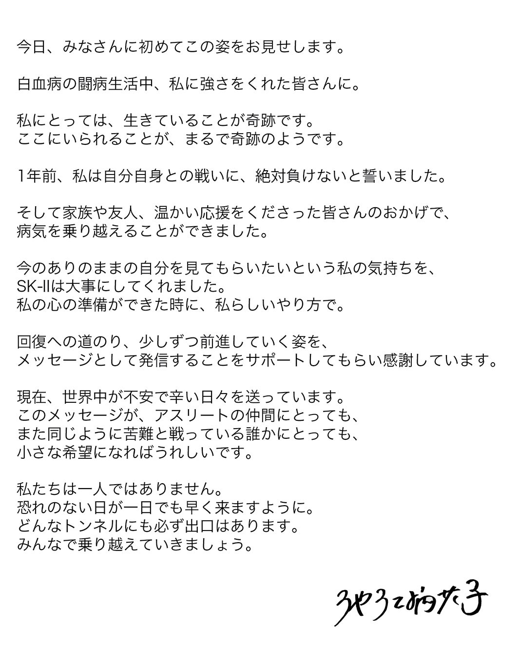 この日、池江選手は「今日、初めてこの姿をお見せします」と綴り、ショートヘア姿の自身が写った複数枚のショットをアップ。「今のありのままの自分を見てもらいたい」という思いから今回の投稿に至ったとし、「このメッセージがひとりでも多くの方の希望になればうれしいです」と思いを語った。SNS上では「素敵です」「美しい」「大きな試練を乗り越えた姿に涙」「勇気をもらえました」など反響が寄せられている。