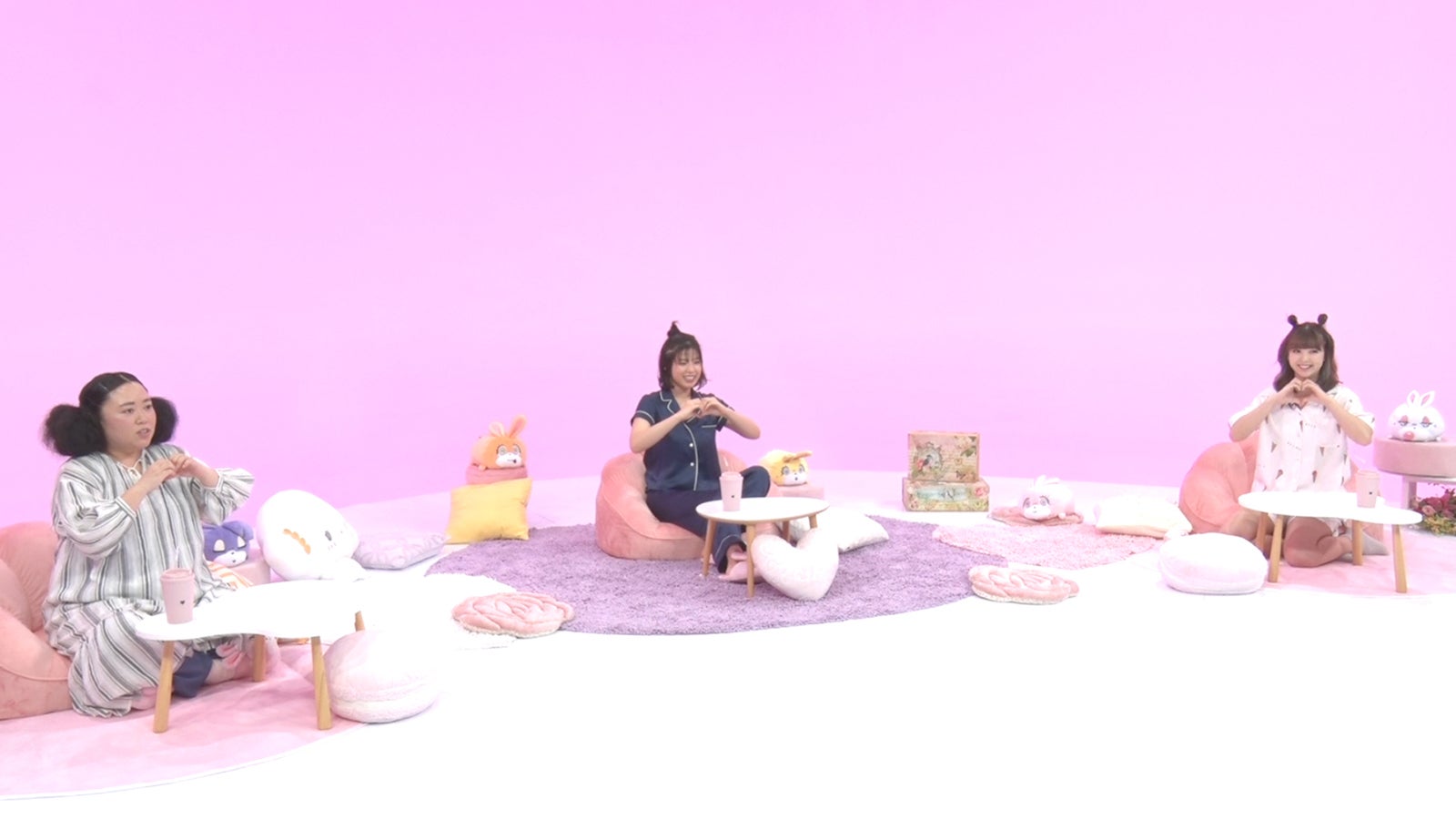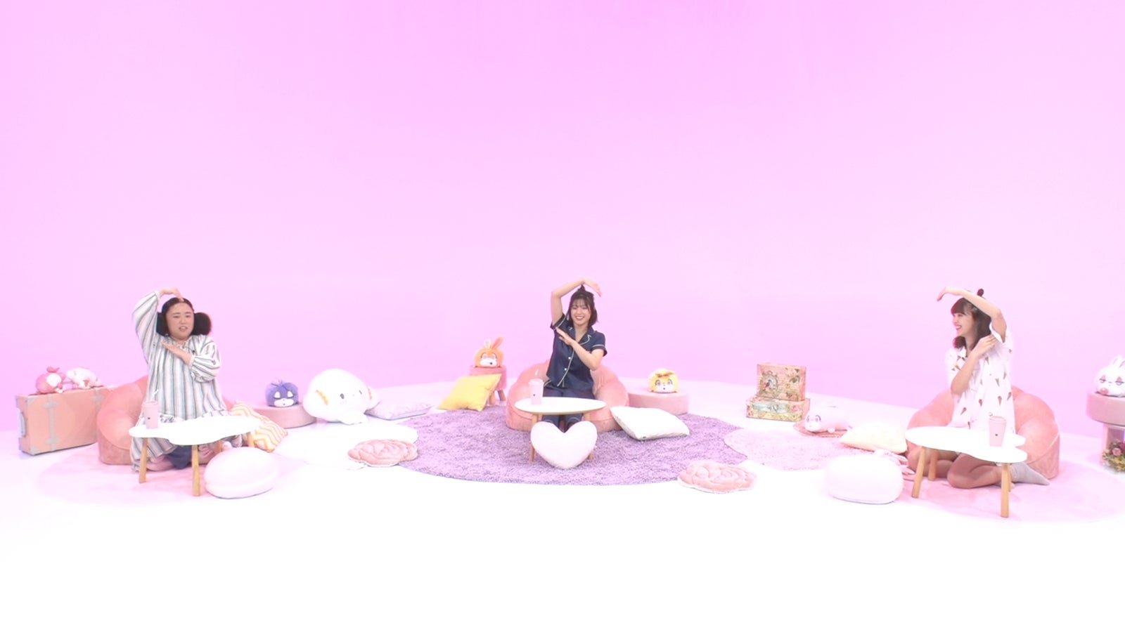 「そういうの覚えたい」(江上)、「全然動いてないからさ。動かしたいんだよね」(藤田)とやる気を見せる2人だったが、石井がハートを作る振り付けを教えると藤田は「簡単にやってるんですけど全然うちできないよ」と弱音をポツリ。それでも3人で「いちばん、いちばん大事なのはLOVE…」と歌いながら、ダンスを披露した。