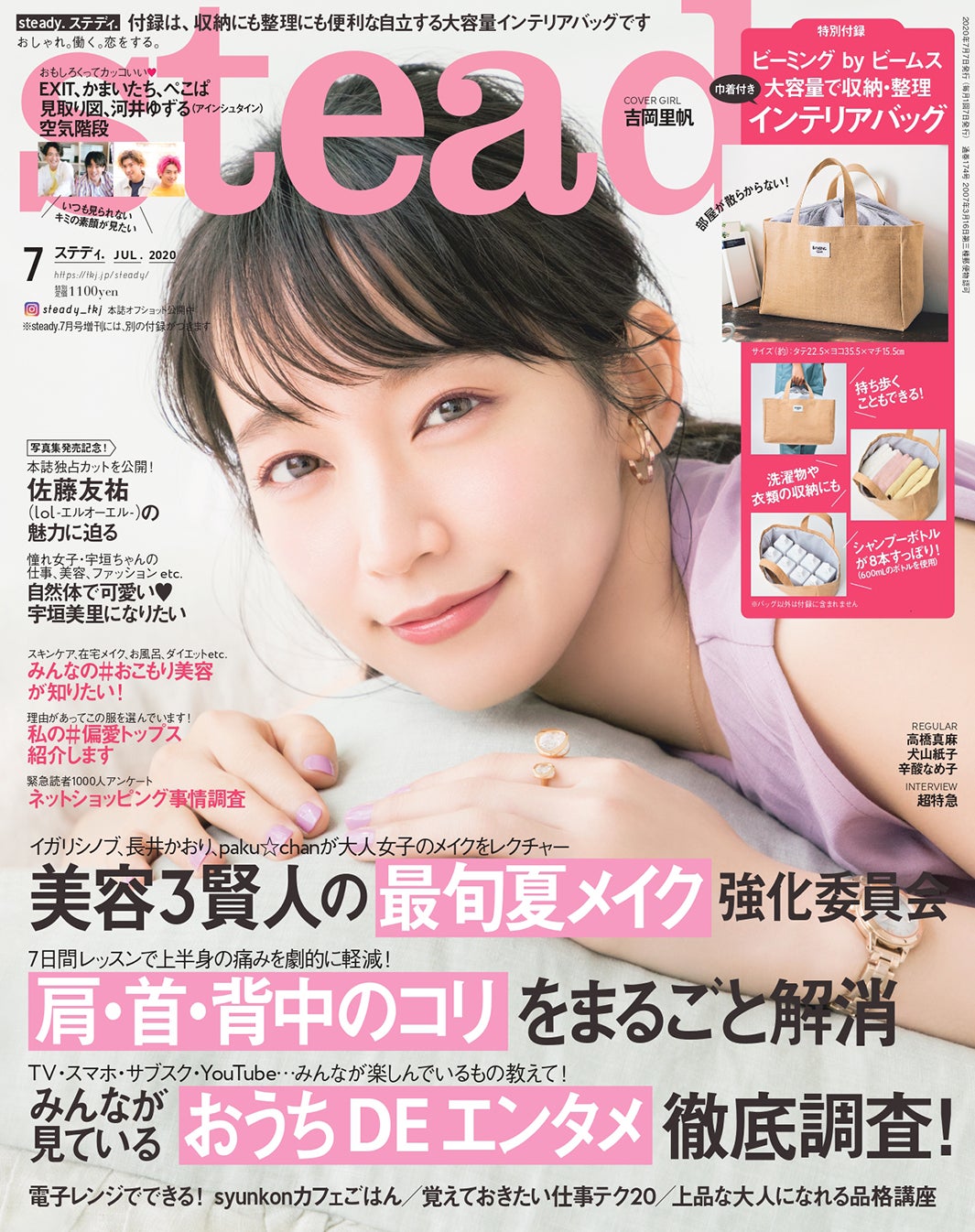女優の吉岡里帆が、発売中の雑誌『steady.』7月号の表紙に登場。誌面では、ボディケアについて語っている。