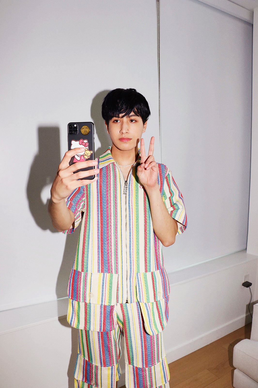 現場で渡邊の入りを待つスタッフは、「どんな人なんだろう?」とドキドキ。「お願いしまーす」と入ってきた渡邊は、私服のセンスもおしゃれ。今回は、ピンクのセットアップと、ゆるいリネンの2スタイルを着用したが、どちらも本人の私物と見紛うほどに着こなした。
