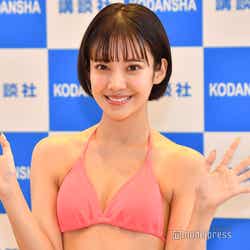 16名中、最年少は15歳・高校1年生の菊地姫奈。「絵を描くことと早起きが得意です。好きなことはいっぱい食べることです。少しずつですが、ドラマ出演が決まって、夢に近づくことができています。初めてのグラビア撮影で最初はすごく緊張していたのですが、今はとても楽しいです」と初々しく語った。