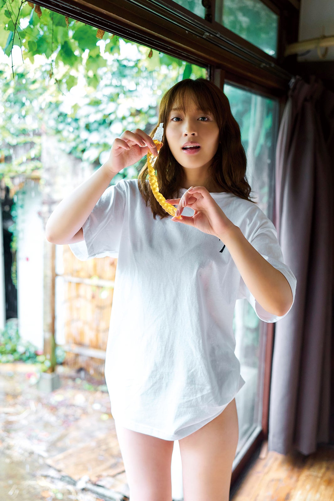 今回2回目の登場となり、テーマは「疑似里帰り」グラビア。コロナ渦で里帰りができなかった読者のために神部が代わりに里帰りをしたような体験をお届け。8月20日に誕生日を迎える神部の25歳最後のグラビアとなっている。「前回の作り込んだ世界観ではなく、小道具の駄菓子を食べたり、扇風機で遊んでみたり、ユニークな撮影で楽しかったです」と撮影を振り返った神部。お気に入りのカットはお菓子に囲まれている写真だといい、「撮影前は食事制限していたので、お菓子に囲まれて幸せ気分でした」とコメント。