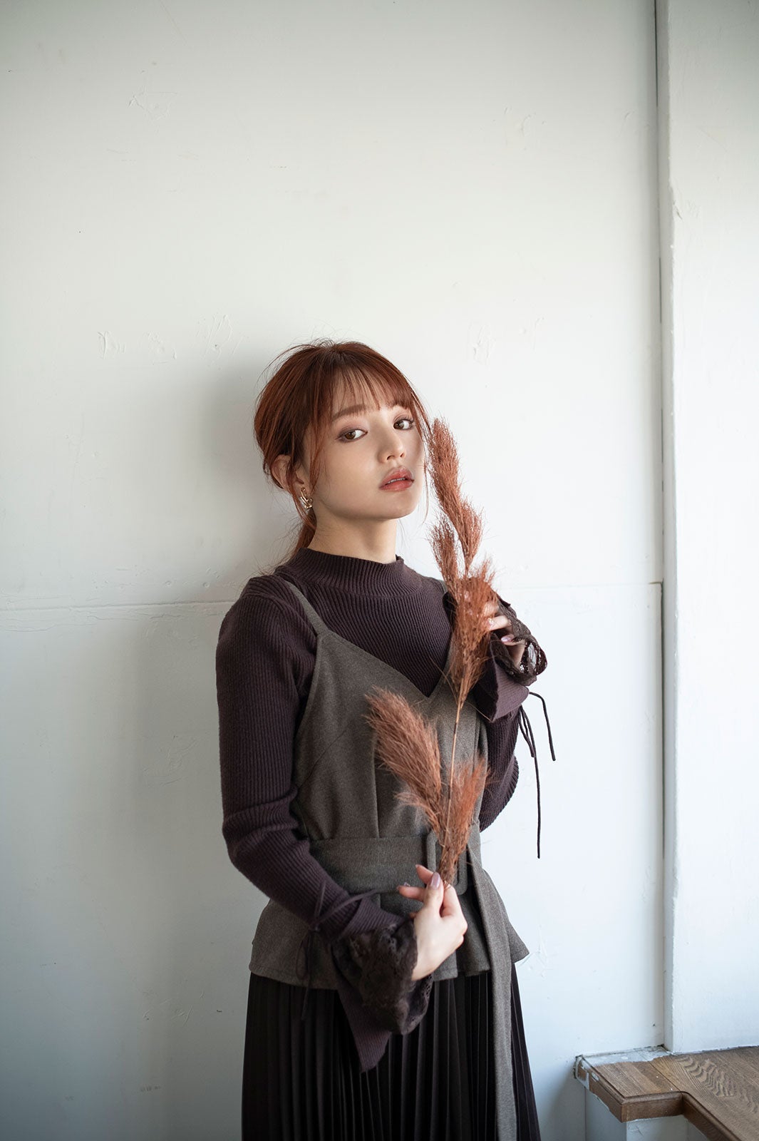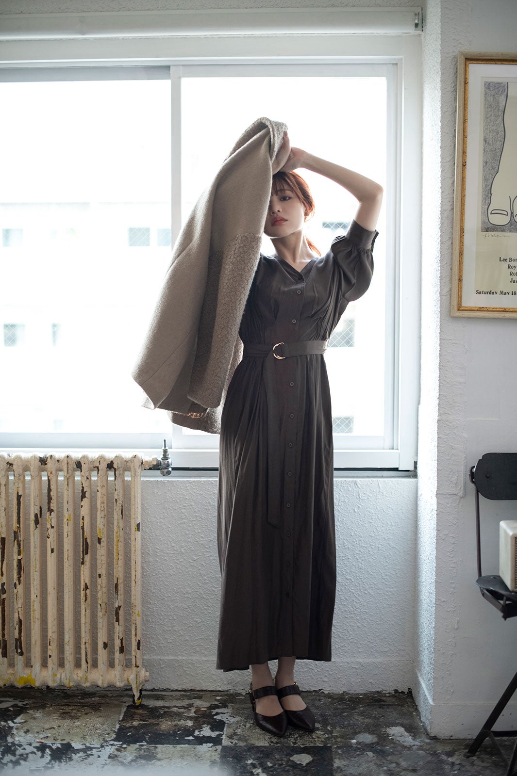 ひらりと揺れるロングドレス、チラリと覗く透き通った肌。どこかアンニュイで愛らしい表情の中に垣間見える大人の色気が、凛とした女性らしい雰囲気を引き立てている。