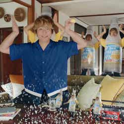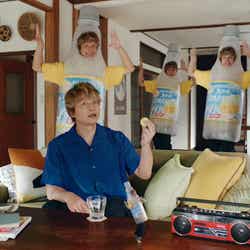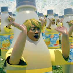 本人役に加えて、ボトル姿の「レモスパ慎吾ズ」のメンバーも、すべて1人で演じた香取。マルチなエンターティナーとしての力を存分に発揮し、それぞれの微妙なキャラクターや表情の違いを器用に演じ分け、カットが掛かる度に現場を明るい雰囲気に包み込んでいた。中でも、特に香取がお気に入りだったのが、ラジカセの前でマイクを持ち口上を披露した“ミニレモスパ慎吾”。ユニークな口上を流暢に響かせるハイテンションの演技を、楽しそうに演じていた。