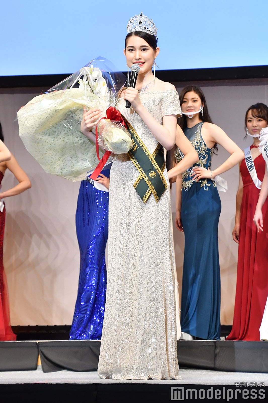 囲み取材では、「実感があまり湧いていないのですが、この大会のためにずっと努力をしてきたので、本当に嬉しいです」と声を弾ませた。発表された瞬間の心境については、「涙が出るかなと思ったのですが、涙は出ず、感謝の気持ちが溢れました」と言葉に。「グランプリを獲るために、自分のことを分析しながら、直すべきところは直して努力をしてきたので、それがよかったのかなと思います」と日本大会を振り返った。11月29日にリモートで開催予定の世界大会については、「世界大会に出られることは光栄なことだと思います。オンラインではありますが、応援してくれた方々への感謝の気持ちを込めて、日本を代表し、自信を持って輝けるように全力を尽くしていきたいと思っています」と抱負を語った。