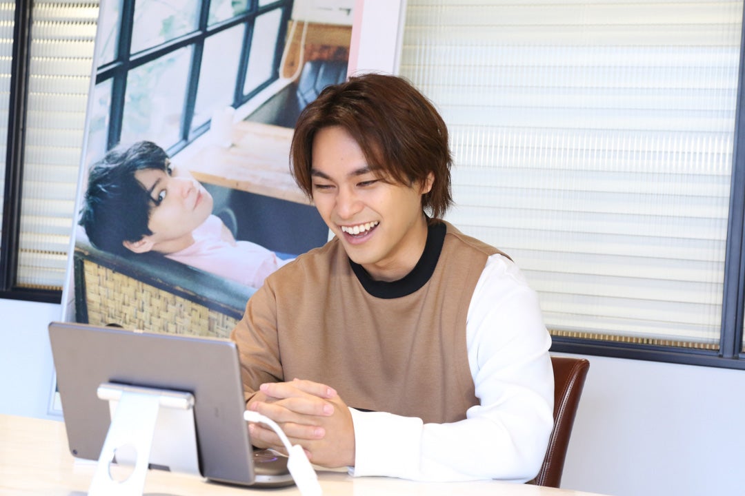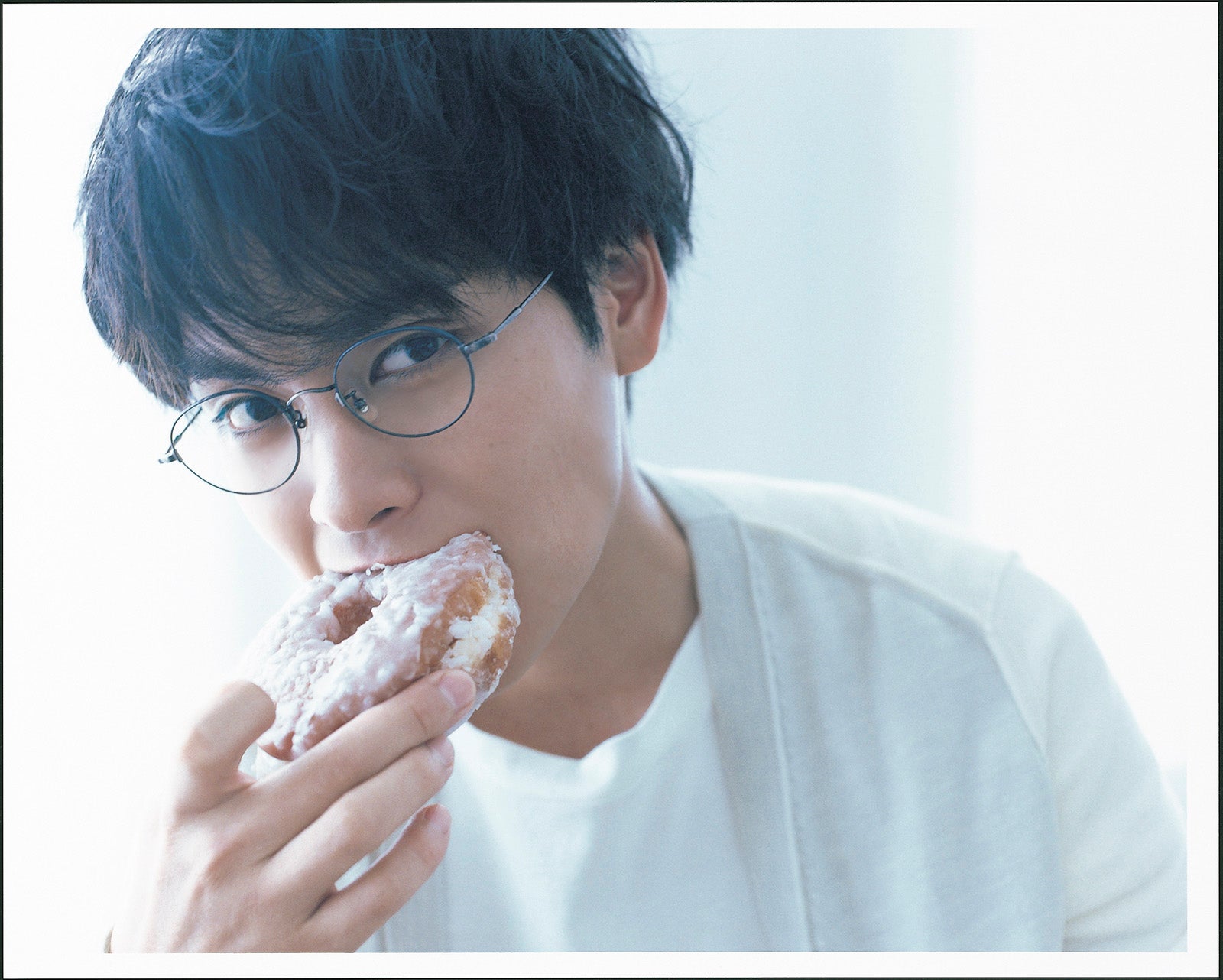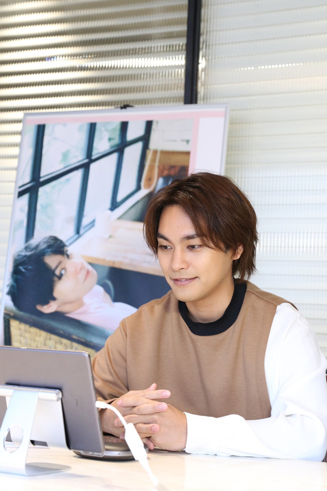セクシーな一面を披露している裏表紙の撮影については「気が付いたらベッドで脱いでました(笑)。カメラマンの森さんの誘導がとても上手で、『それじゃあ、カーディガン脱いでみようか』と自然な流れでさらっと言われるので、僕も自然に脱いでしまったという感覚でした。今まで映画やドラマなどでもセクシーなシーンというのは経験がなかったのですが、普段の僕は裸で寝ることもあるので、その雰囲気を捉えていただけたのかなと思います」と振り返った。