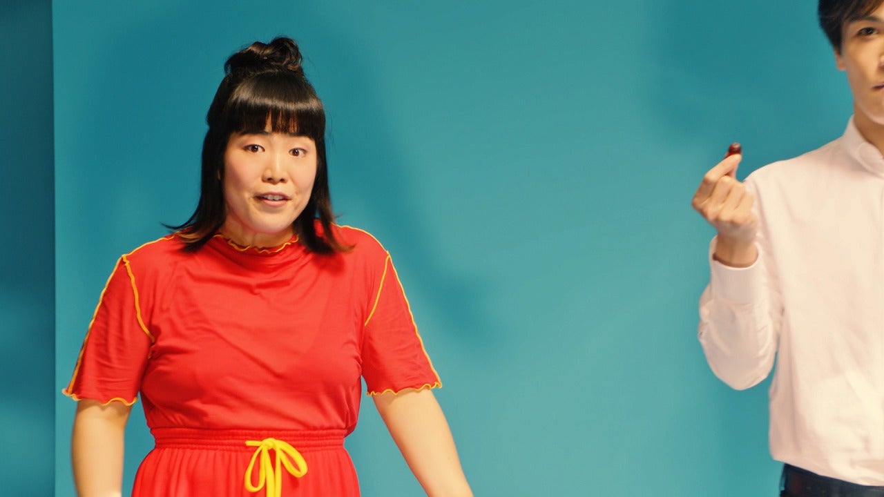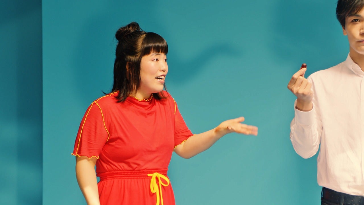 岩田とゆりやんがスタジオ入りし、監督から撮影の説明を受ける場面では、岩田は既に口元に笑みを浮かべ、“ゆりやんが横にいる”という状況だけで頬が緩んでしまう様子。いざカメラが回り始めると、ゆりやんの呟く言葉や一挙手一投足に笑ってしまう。