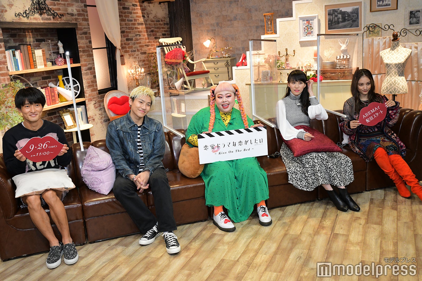 『恋愛ドラマな恋がしたい~Kiss On The Bed~』(以下『ドラ恋』)は、キスシーンのある恋愛ドラマの撮影で、若手俳優たちの間に恋が生まれるのかを追いかけるオリジナル恋愛リアリティショー。この日は同じく本番組のMCを務める福徳秀介(ジャルジャル)、渡辺直美、あ~ちゃんこと西脇綾香(Perfume)、谷まりあも出席した。