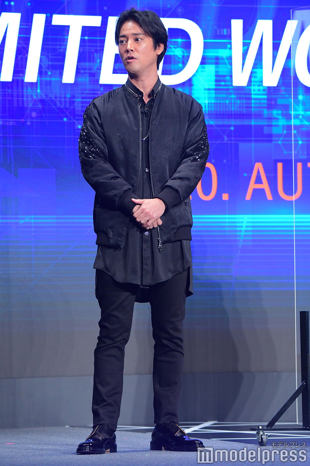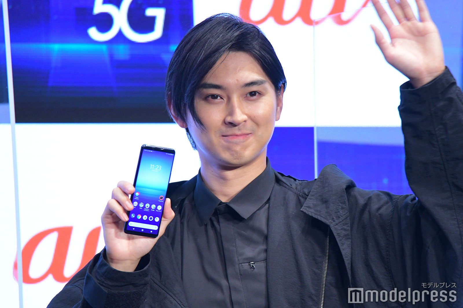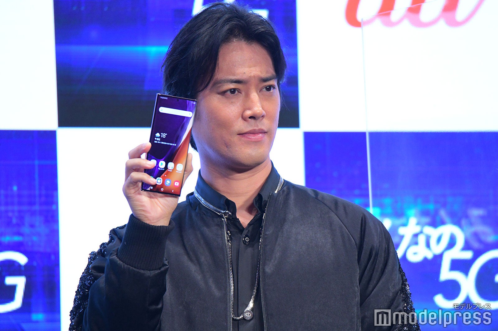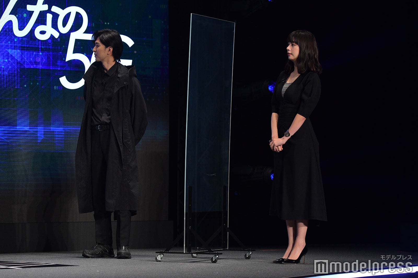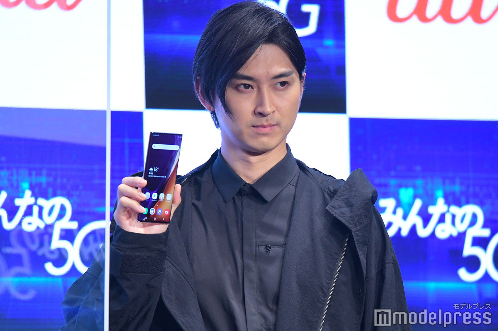 当日に解禁となった新CMは、マツダ(松田)、キリタニ(桐谷)、ハマダ(濱田岳)の3人が、それぞれ別の場所から5Gの世界に飛び込んで、5Gによって実現される世界を体験するという物語になっている。それぞれ、桃太郎(松田)、浦島太郎(桐谷)、親指姫(池田)として“三太郎”CMシリーズで共演してきた3人だが、この組み合わせでイベントに登場するのは初めて。新CMにちなんで、黒を基調にした現代的な装いで登場した。