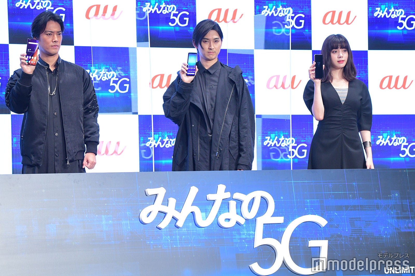 俳優の松田翔太、桐谷健太、モデルで女優の池田エライザが25日、都内で開催されたモバイル新サービスの発表会に出席した。