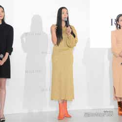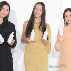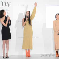 商品コンセプト「輝いて自分らしく生きる」にちなみ、輝いている瞬間を質問された一同。BENIは、「家でもステージでも愛を感じる瞬間は人って輝くと思います」と幸せオーラ全開のコメント。報道陣から祝福の言葉とともに現在の様子を尋ねられると、「ありがとうございます。今(妊娠)7ヶ月目です。最初は初めてだったので戸惑いというか不安もありましたが、仕事も同時にやっていたので逆に紛れて、今は元気いっぱいです。すごく肌も髪も順調なので、このまま続いて欲しいですね」とにっこり。お腹の中の赤ちゃんについては、「ガンガン蹴ってきます。音にすごく反応します。中で踊っています」と、すでにアーティストの子供らしい様子であることも明かした。土屋は「ママでもあるので、子供たちの寝顔や笑顔を見ると幸せだなぁと心がフワッとなるけど、好きなことに没頭している時間は(一番)自分が輝けている時間だと思うから、スポーツをしたり、海に行くと人生最高に楽しい!と思います」と返答。島袋は「プロデュースをしているお洋服やジュエリーのデザインを考えているときはワクワクして輝いているのかなと思います」と笑みをこぼした。