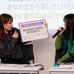 まず、ドラマの1シーンを視聴しながら“交際と性的同意”についてフリートークを展開。ひかりんちょは、同世代の意見として「お悩み相談で色々メッセージを頂くんですけど、(性的同意の取れないまま)流れで性的行為をやっちゃう子もいて。好きだから別れたくなくて…という子もいる」と高校生にとって身近な悩みであることをコメント。性的同意について高橋氏は、「私は初めてキスをしたその日にはそれ以上はしない、というマイルールを決めていたんです。それを皆さんに強いるわけじゃなくて、皆さんが実際そうなった時にどうするか?ということを今のうちから想像しておいたほうが良い、ということを伝えたいですね」と高校生に向けたメッセージを送ると、辻氏も「性的同意は是非皆さんに覚えておいてほしい言葉です」と自身のメッセージを主張した。