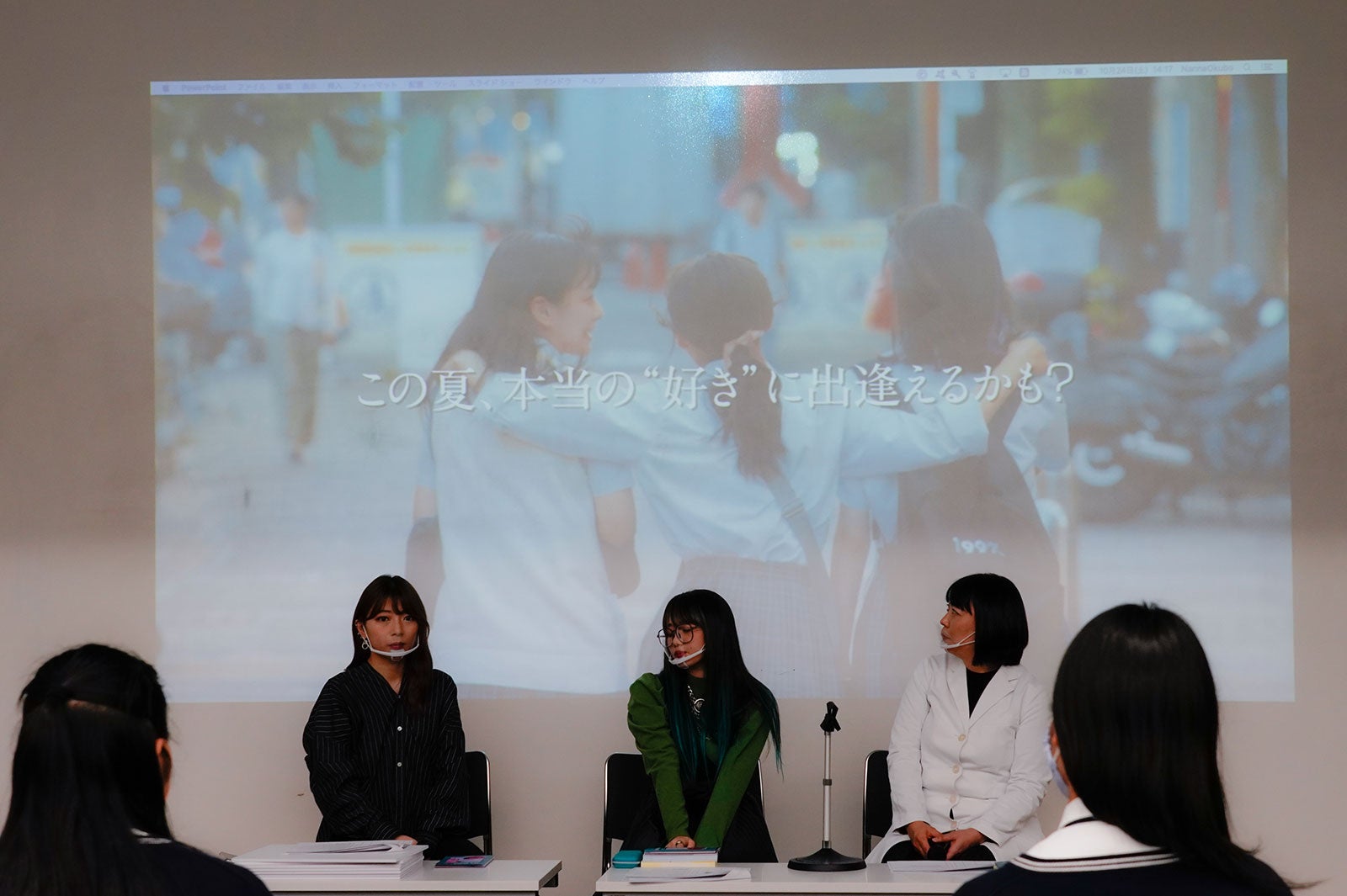 24日に近畿大学附属高等学校にて、「ABEMAオリジナルドラマ『17.3 about a sex』プレゼンツ 性と向き合う特別授業~性にまつわる、ウソとホントとホンネのトーク~」が開催。現役高校生YouTuber・ひかりんちょらが登壇した。