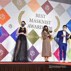モデルで女優の河北麻友子と、モデルでタレントのゆきぽよが4日、都内で行われた「ベストマスクニストアワード2020」に、元サッカー女子日本代表でタレントの丸山桂里奈、お笑いコンビ・ミルクボーイ(駒場孝、内海崇)とともに出席。マスク着用時のファッションやメイクのポイントを語った。