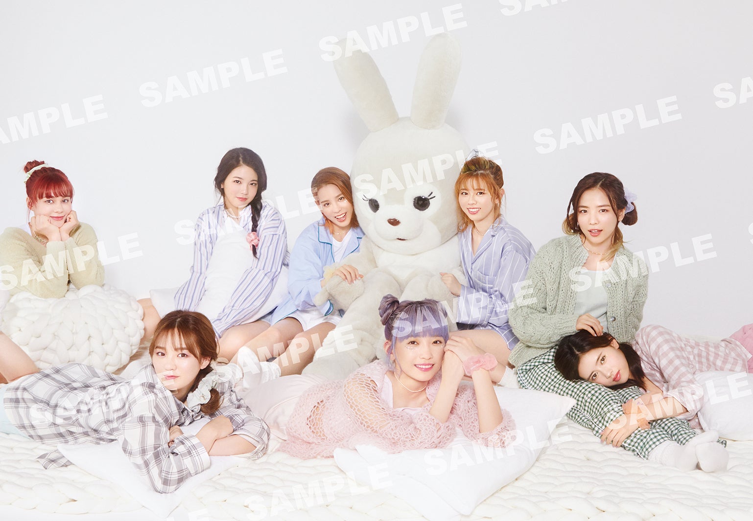 そんなパジャマ撮影のクライマックスは、着ぐるみのウサギがサプライズ登場。扉から入ってきたウサギに気づくと、メンバーは「キャー!」と一目散にダッシュ。代わる代わるウサギをハグしたり、撫で回したり。撮影を忘れて大はしゃぎしていた。
